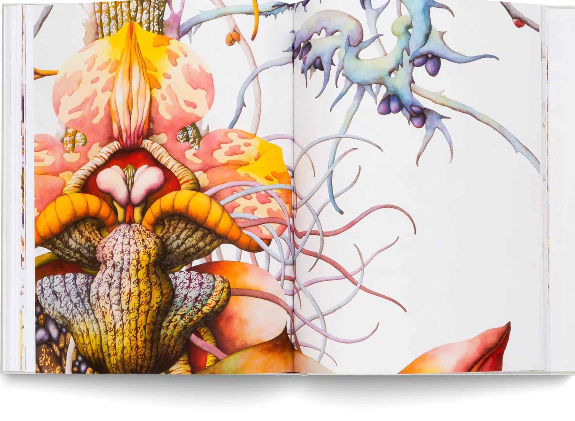 The Romanian-German artist Miron Schmückle is a singular position within contemporary art. Growing up in Romania under Nicolae Ceaușescu, he dreamed of other worlds that seemed forever inaccessible due to the Iron Curtain. From the beginning, Schmückle’s uniquely coherent pictorial cosmos has been linked to the idea of primeval forests and jungles, oscillating between hyperrealism and undisguised escapism, precise observation of nature and exuberant imagination. His almost scientific approach belies the fact that his complex creations have not sprung from nature but from imagination. Schmückle’s fascinating hybrid creatures intertwine notions of scent and poison, beauty and transience, anatomy and sexuality to create an oeuvre between truth and invention that is both timeless and ostensibly fallen out of time.