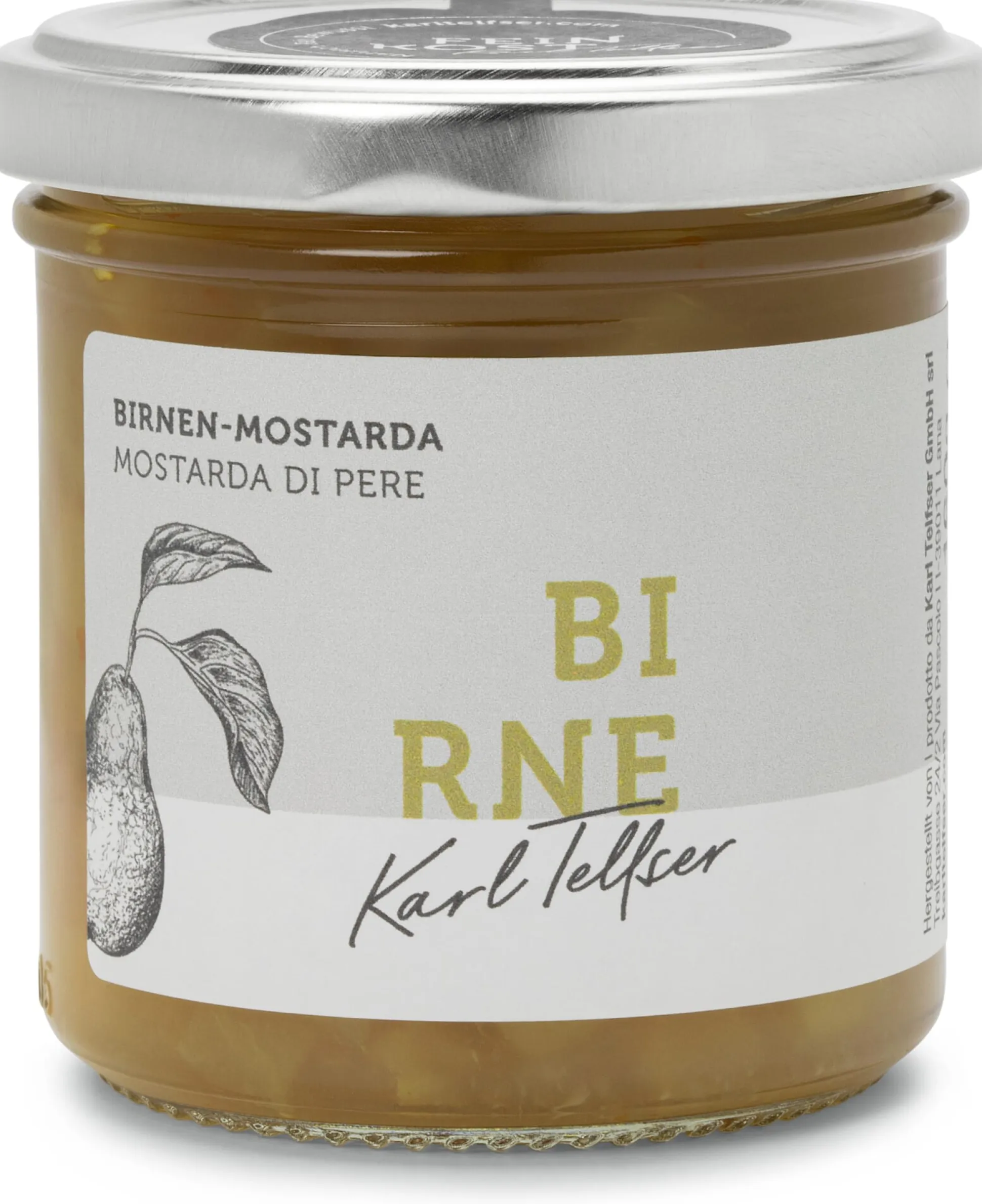 Mostarda ist eine süß-scharfe italienische Fruchtpaste, die meist aus Obst und Senf hergestellt wird. (Nicht umsonst ist der Name eng verwandt mit zwei Begriffen, die Senf bezeichnen – dem englischen Mustard und dem vor allem im Nordwesten Deutschlands gebräuchlichen Mostert.) Karl Telfser geht einen anderen Weg. Zwar steht auch bei ihm die Frucht im Vordergrund, die Würze und Schärfe kommen jedoch über Ingwer und Chili. Hauptzutat dieser Mostarda sind saftig-süße Birnen, aus denen sie zu mehr als 90 Prozent besteht. Etwas Rohrzucker mit seiner authentischen Süße rundet die Mostarda ab. Sie schmeckt besonders gut zu Sandwiches, Käse und Salatdressings, kann aber auch wie ein Gewürz beim Kochen verwendet werden.