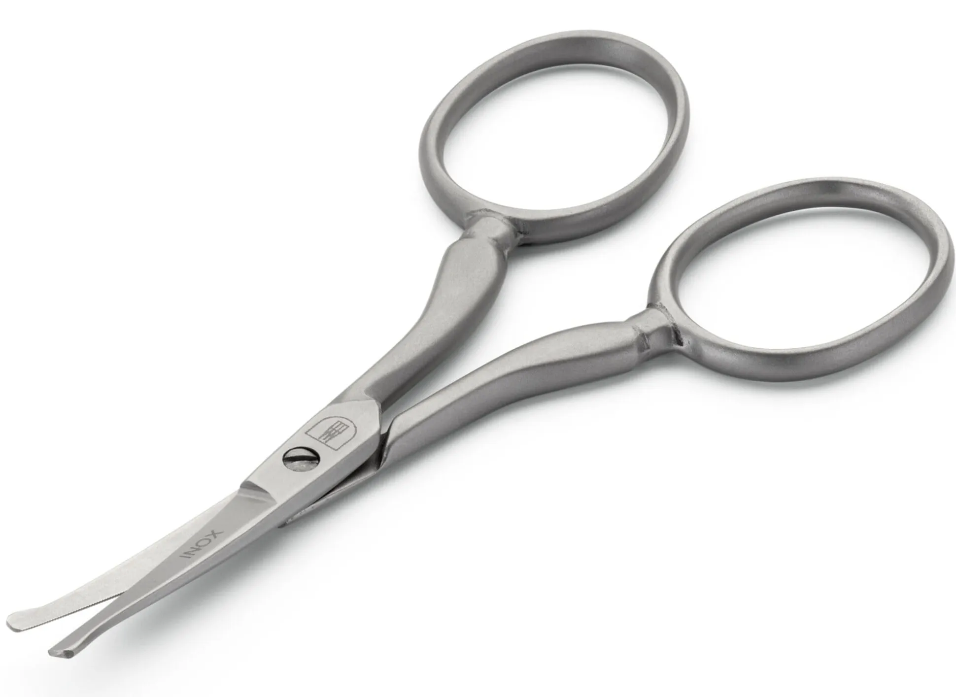 Die Nasen- und Ohrhaarschere ist mit einer Kugelspitze gearbeitet, die Verletzungen verhindert. Dank der aufgebogenen Schneide (wie bei einer Nagelschere) ist die Schere leicht zu verwenden, da sie die Anatomie – keine Nase ist gerade – berücksichtigt. Zudem ist eine Schneide mit einer feinen Mikrozahnung versehen, sodass jedes Haar sicher gefasst wird und die Schneiden nicht abrutschen. Die Nasen- und Ohrhaarschere ist auch zum Bartstutzen geeignet.
