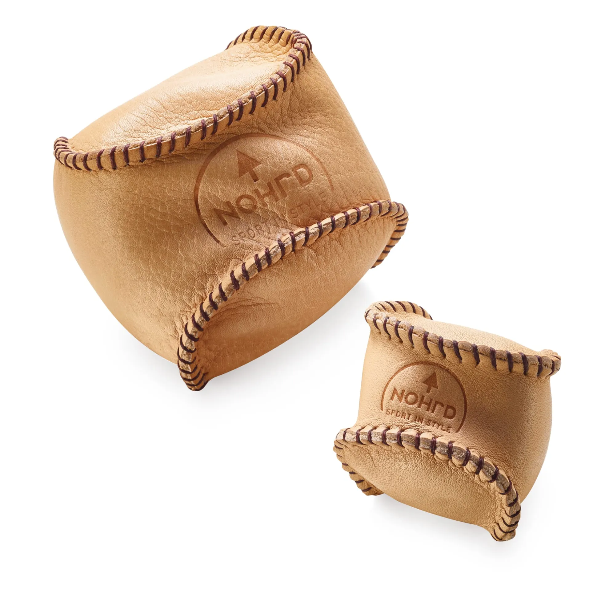 Vegetabil gegerbtes Rindleder, Herkunft Deutschland, mit Bienenwachsfett behandelt. Füllung aus Eisengranulat. Gefertigt in Deutschland.