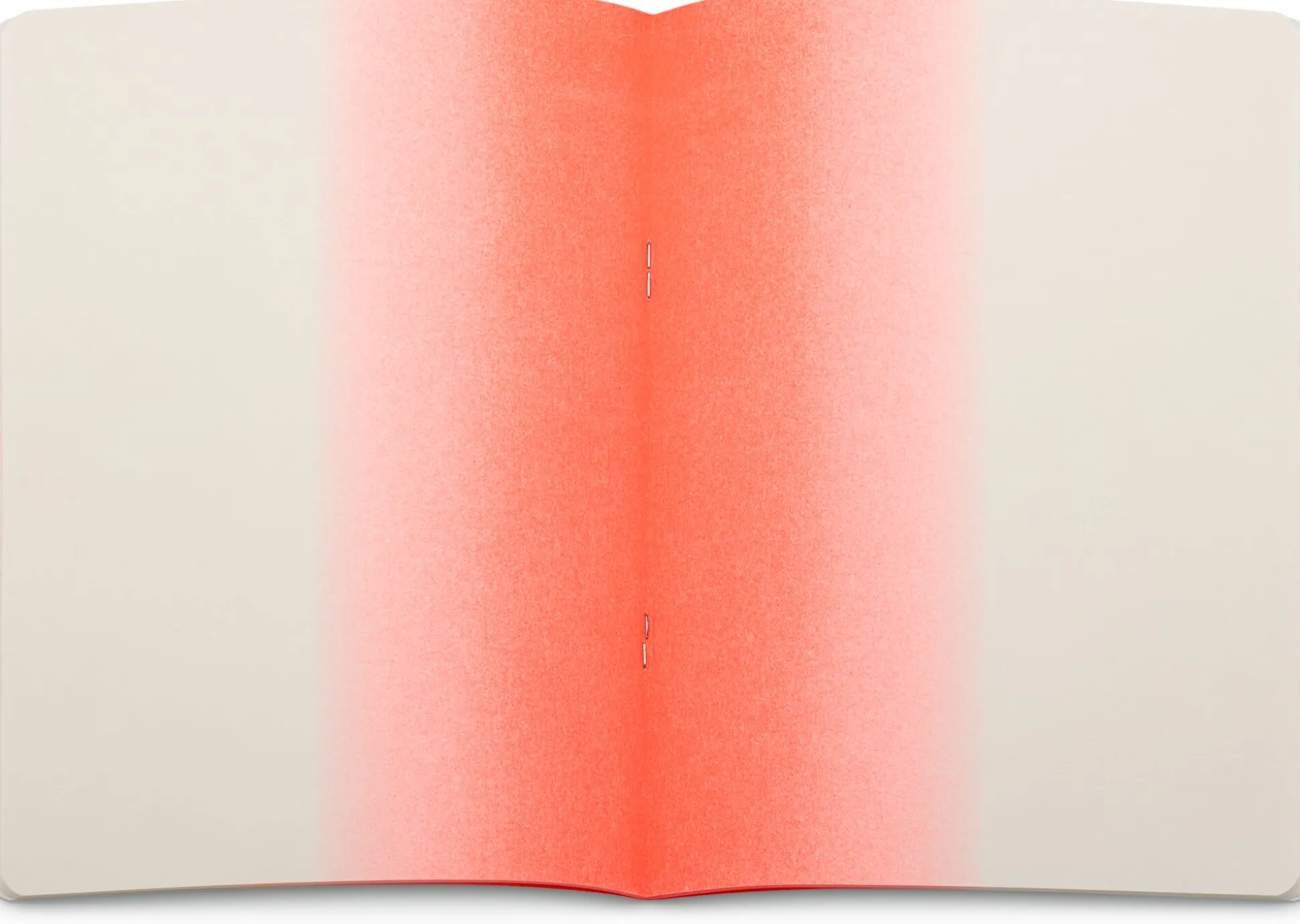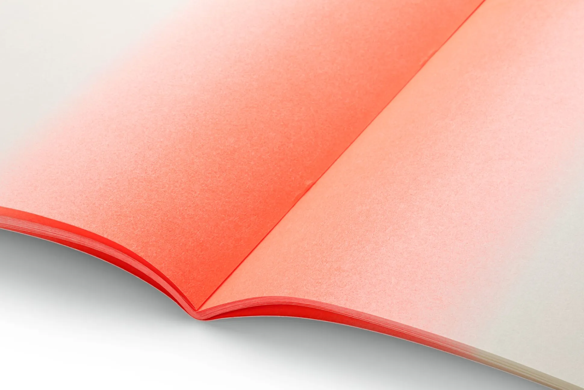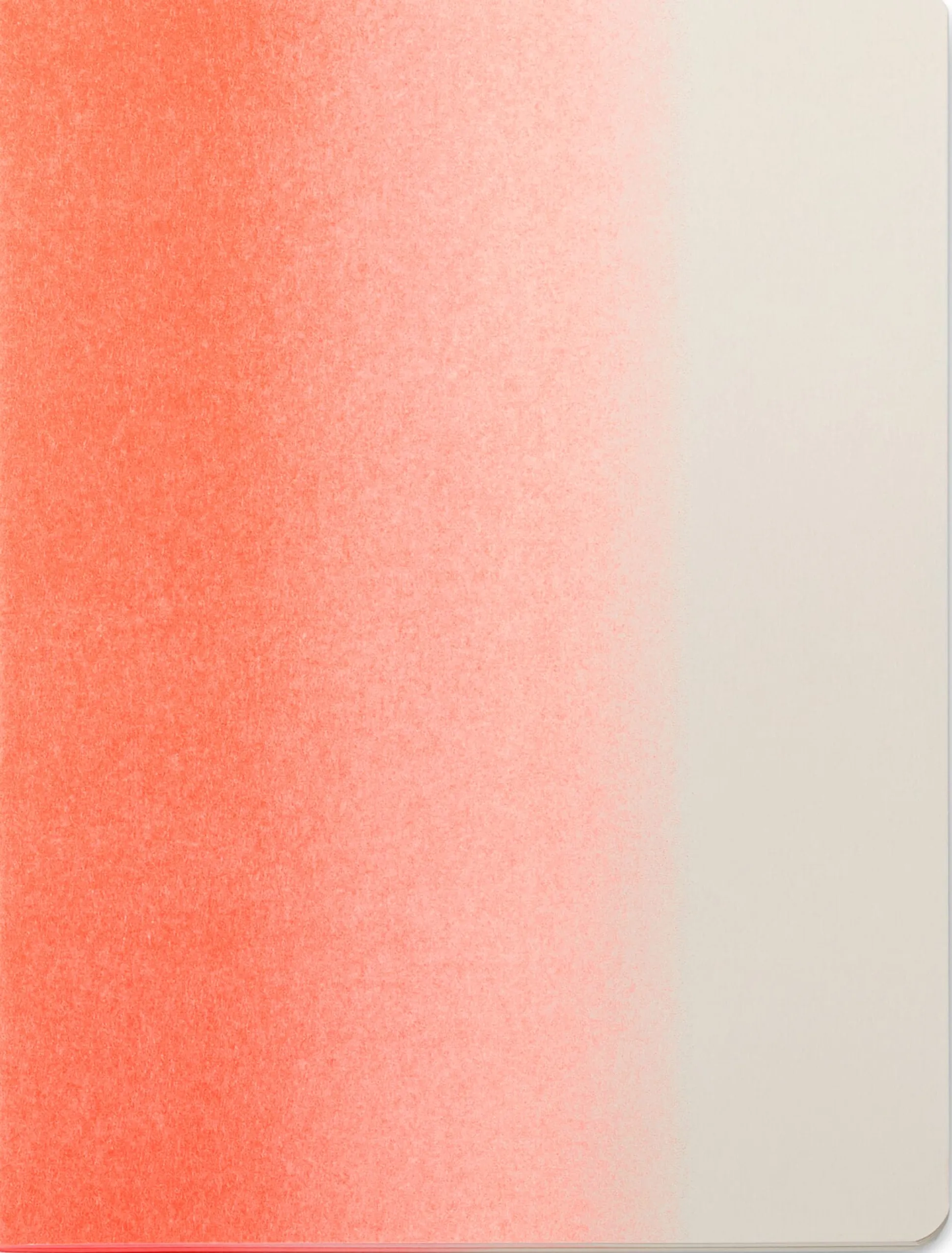 Leuchtende Notizen. Alle 52 Seiten dieses Notizbuchs aus cremweißem Munkenpapier tragen einen neon-orangenen Farbververlauf. Im Risographie-Druckverfahren gedruckt, erscheint er fast plastisch und besonders leuchtend. Ob Schönschrift, unleserliche Klaue oder Kinderkritzeln – in Kombination mit dem kräftigen Farbdruck wirkt (fast) alles grafisch wohlplatziert und gut gemacht. Für eine gute Haptik sind die Ecken des kompakten Heftes abgerundet.