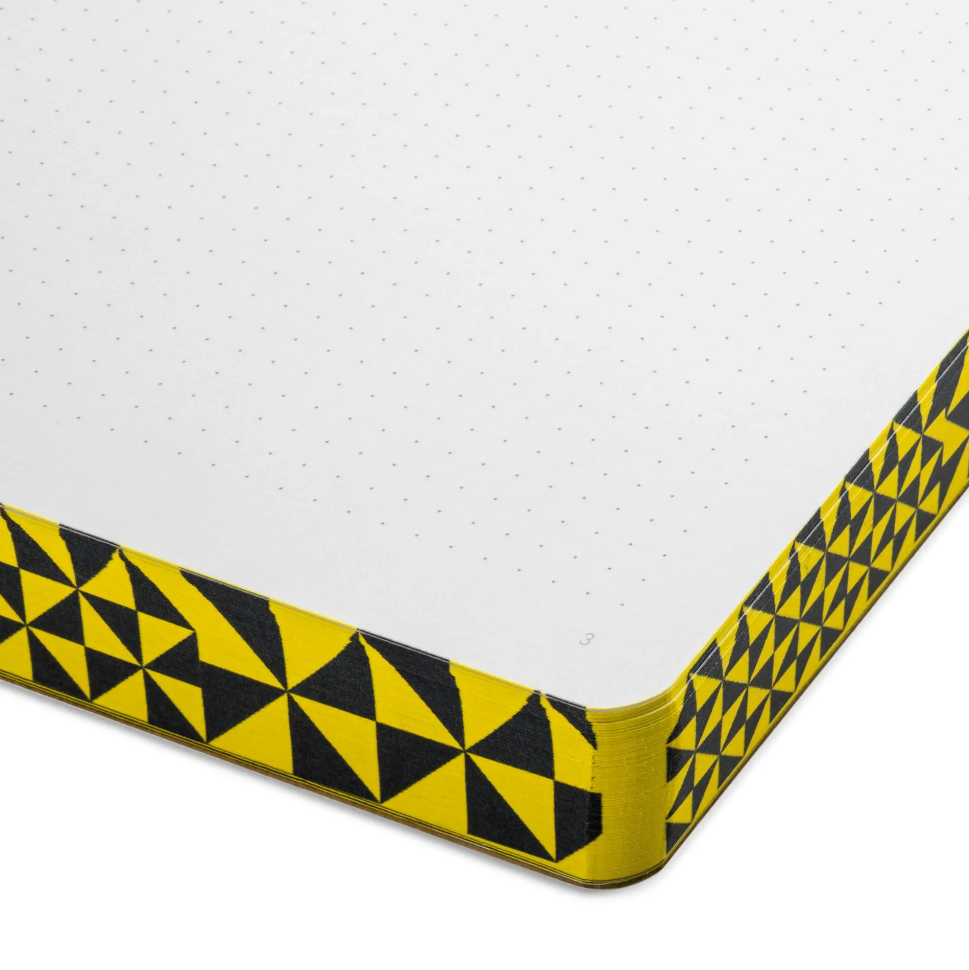 Aus sonnengelbem (Pantone 115), samtweichen Lederfaserstoff (Lefa) – aus recycelten Lederresten und Naturlatex hergestellt – gefüllt mit 256 Seiten Munken Papier mit feinem Punktraster. Schön und ungewöhnlich ist die Schnittverzierung: Ein kaleidoskopisches Muster läuft einmal komplett um den Buchblock und den Buchrücken. Der perfekte Augen- und Handschmeichler, stimmungsaufhellend und vielleicht auch glückerzeugend.