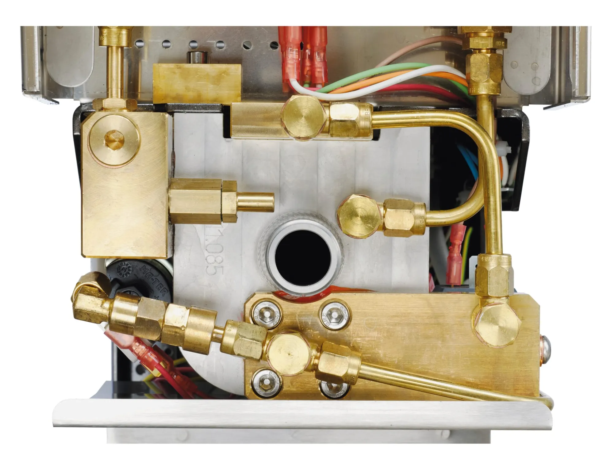 Ein Blick auf die Maschinen zeigt die Haltung, mit der die Ingenieure von Olympia Express in der Schweiz zu Werke gehen: Perfektion und Materialversessenheit bis ins letzte Detail, zugunsten der Espressoqualität und zugunsten von Zuverlässigkeit, Langlebigkeit und Reparierbarkeit der Geräte. Es begegnet einem eine geradezu atemberaubende Opulenz wirklich solider Materialien: rostfreier Edelstahl, Chrom und Messing, das Ganze kompakt verbaut und verpackt in ein massives Gehäuse, in eine dickwandige Ummantelung und bestückt mit Armaturen, wie sie einer professionellen Barmaschine zur Ehre gereichen.