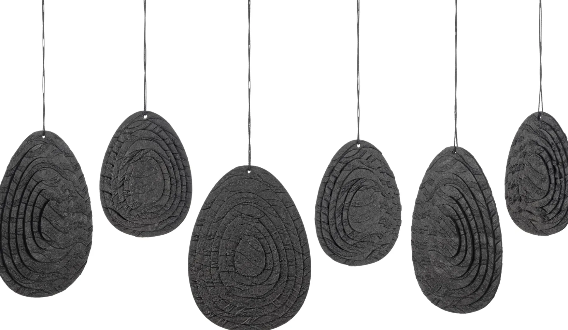 Zero Waste, null Verschwendung: Nach diesem Credo weiß ein dänisches Unternehmen selbst den Verschnitt des Recyclingpapiers, das es für seine Produkte verarbeitet, sinnvoll unter dem Label OOhh zu verwenden. Im Rahmen einer Fair-Trade-Fraueninitiative auf Sri Lanka wird der Verschnitt als Zero-Waste-Papier einer neuen Bestimmung zugeführt. Dabei entstehen in Handarbeit dekorative Objekte wie diese Osterei-Aufhänger, die mit dezentem 3-D-Effekt aufwarten und einen stilvollen Akzent in Ihrer Osterdekoration setzen – mit gleichsam zweifacher symbolischer Bedeutung: Wie in der christlichen (Oster-)Symbolik das Ei für die Auferstehung Jesu steht, zeugen diese Ostereier von der Wiederauferstehung von Papierresten.