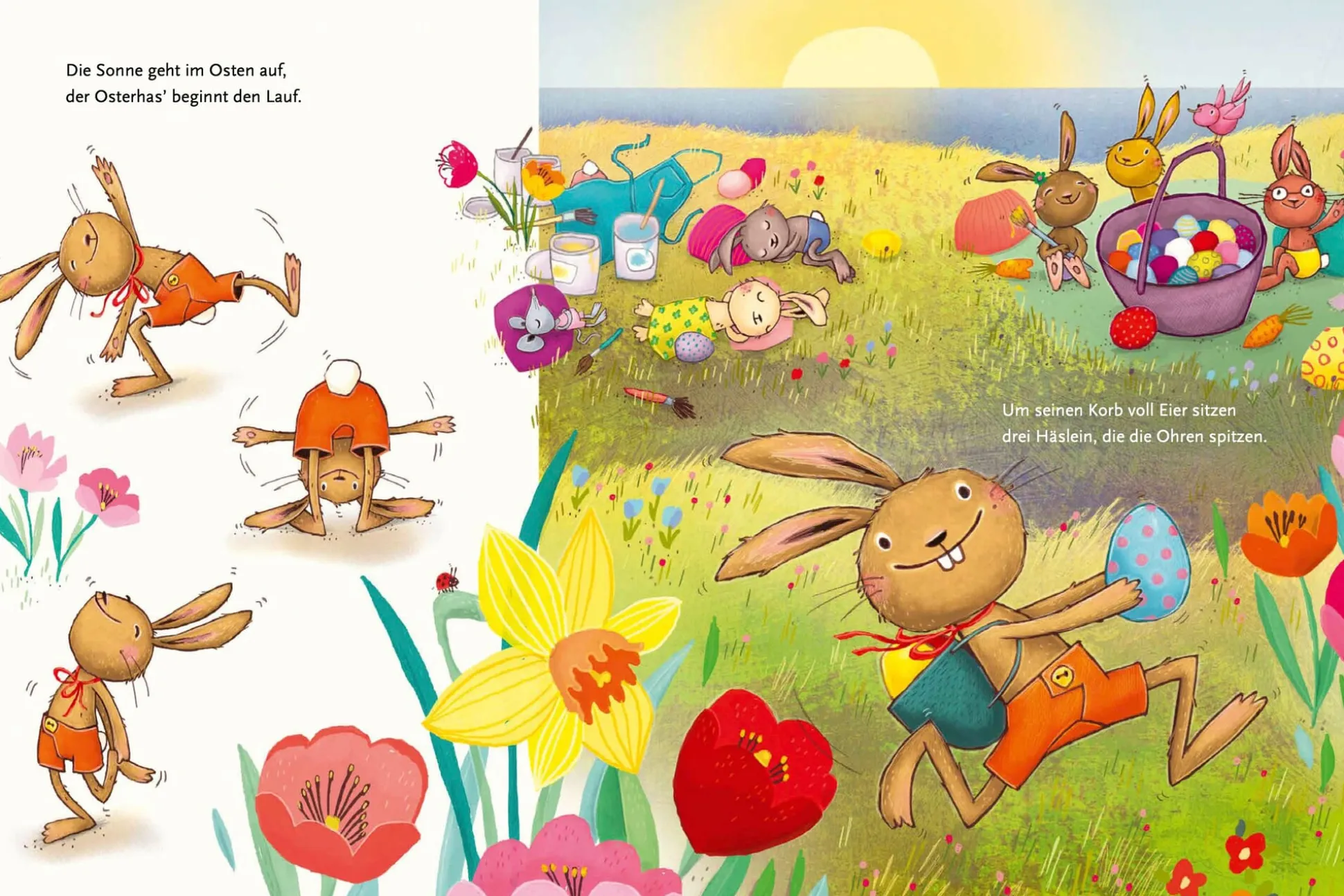 Christian Morgenstern versteht es, das Frühlingsfest mit Witz und voller Poesie in Szene zu setzen und nimmt die Kinder mit auf die bunte Reise des Osterhasen. Dieses fröhliche Bilderbuch besticht durch Pe Grigos frische Illustrationen und versetzt Groß und Klein in frühlingshafte Stimmung. »Die Sonne geht im Osten auf, der Osterhas’ beginnt den Lauf.«