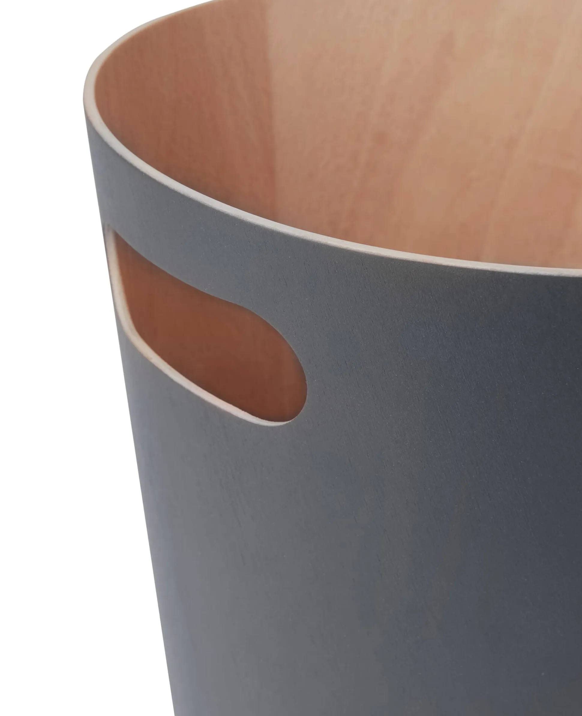 Aus feinem Sperrholz, innen naturfarben belassen, von außen in unterschiedlichen Oberflächen. Formschönes und diskretes kleines Handwerksstück. Mit einseitigem Tragegriff zur besseren Handhabung.