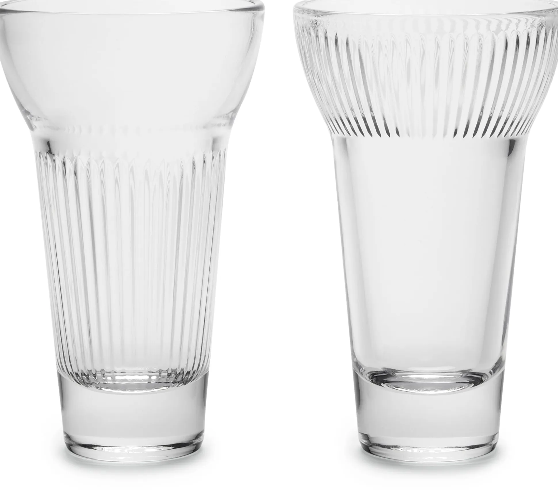 Je zwei Gläser passen im Dekor zusammen. Pressglas, hergestellt in Frankreich. Volumen 220 ml. Höhe 13,3 cm. Ø oben 8 cm, Ø Boden 4 cm. Gewicht 300 g.