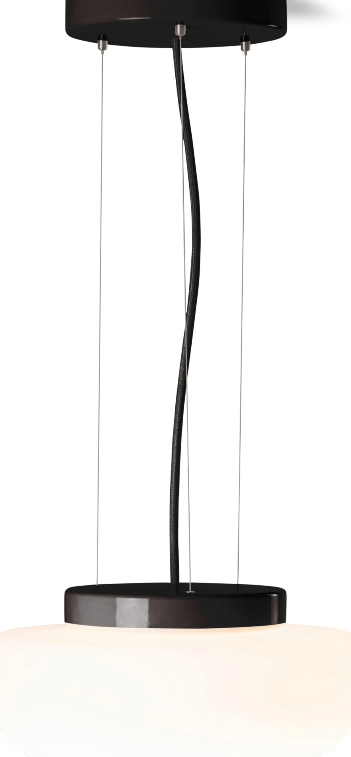 Diese in Schweden gezeichnete und gefertigte Pendelleuchte ist eine echte Materialschönheit: Die glasierte Porzallanschale ist für zwei Leuchtmittel ausgelegt und abgedeckt von einem schön proportionierten Schirm aus Opalglas. Ergebnis ist ein angenehm diffuses Licht. Drei feine Drahtseile sowie der ebenfalls aus Pozellan gefertigte Baldachin tragen die Leuchte. Wie die Drahtseile kann auch das Textilkabel auf jede Länge zwischen 40 cm und 2 m eingestellt werden. SOLENNE ist mit zwei E27-Fassungen ausgestattet – und sorgt so für Freiheit bei der Wahl des Leuchtmittels.