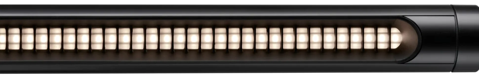 Perfekt gearbeitetes Gehäuse, genau definiertes Licht: Bei der Pendelleuchte LINIER W 181 liefert eine Reihe von 256 tief eingelassenen optischen Einzelsystemen, die extrem dicht gepackt sind, ein klares, gerichtetes und blendfreies Licht. Separate Blendschutzfächer ermöglichen ein genau definiertes Feld von warmer, ausgewogener und blendfreier Beleuchtung auf Tisch- oder Arbeitsflächen. Die Leuchte besitzt an beiden Enden ins Gehäuse integrierte Stellrädchen, die ein stufenloses Dimmen der Beleuchtungsstärke ermöglichen. Jedes kann unabhängig gedreht werden, um das gewünschte Lichtniveau einzustellen, was eine optimale Anpassungsfähigkeit ermöglicht.