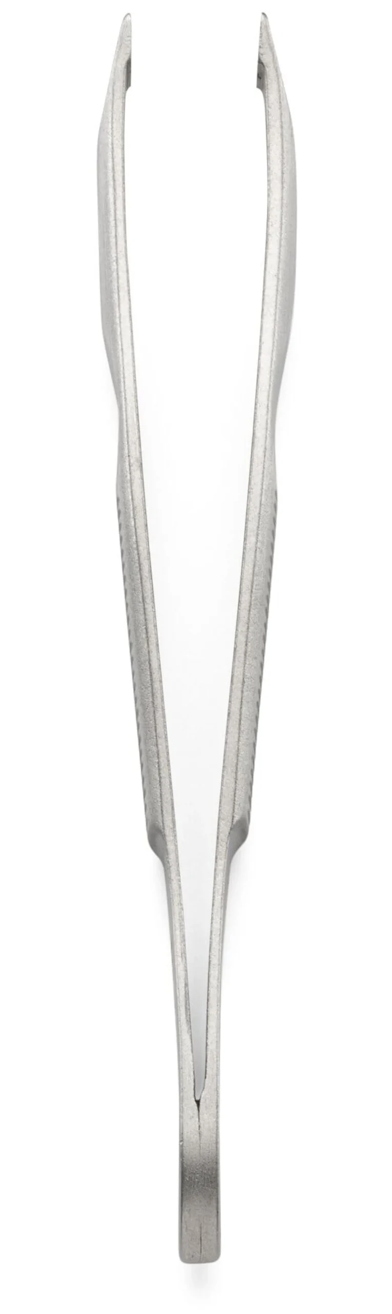 Einfache Pinzette mit schräger Spitze: Sie öffnet sich bis 7 mm und ist an den Griffflächen geschliffen.