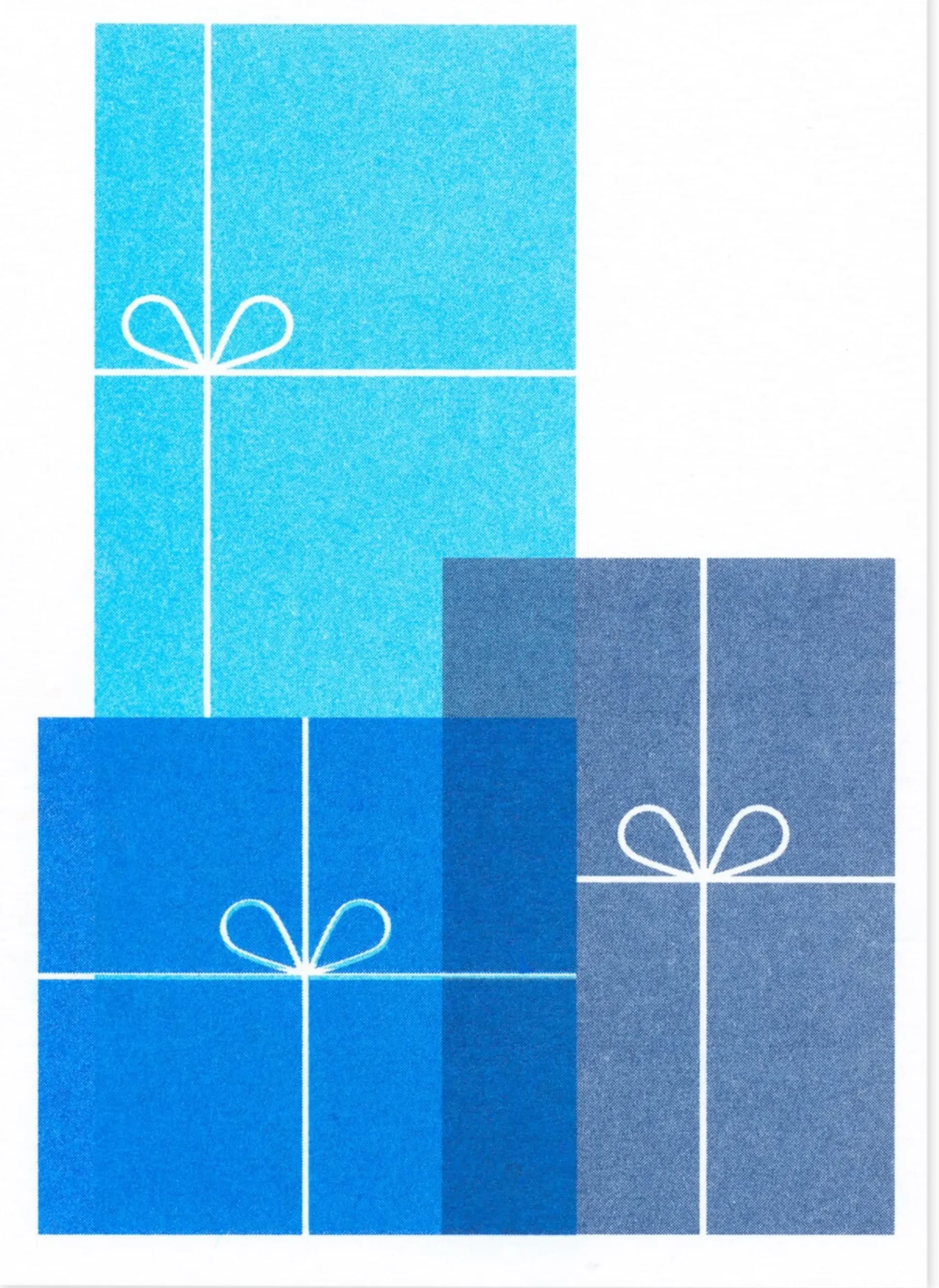 Die Risographie gilt als eines der energiesparendsten Druckverfahren überhaupt. Ähnlich dem Siebdruckverfahren werden Masterfolien aus Hanffasern hergestellt, die anschließend – auf eine Trommel aufgezogen – von der auf Reiskleie basierenden Farbe durchdrungen werden. Dabei wird jede Karte zum Unikat: Ein variierender Farbauftrag sowie ein leichter Versatz gehören ebenso zum Druckbild wie der mögliche leichte Farbabrieb.