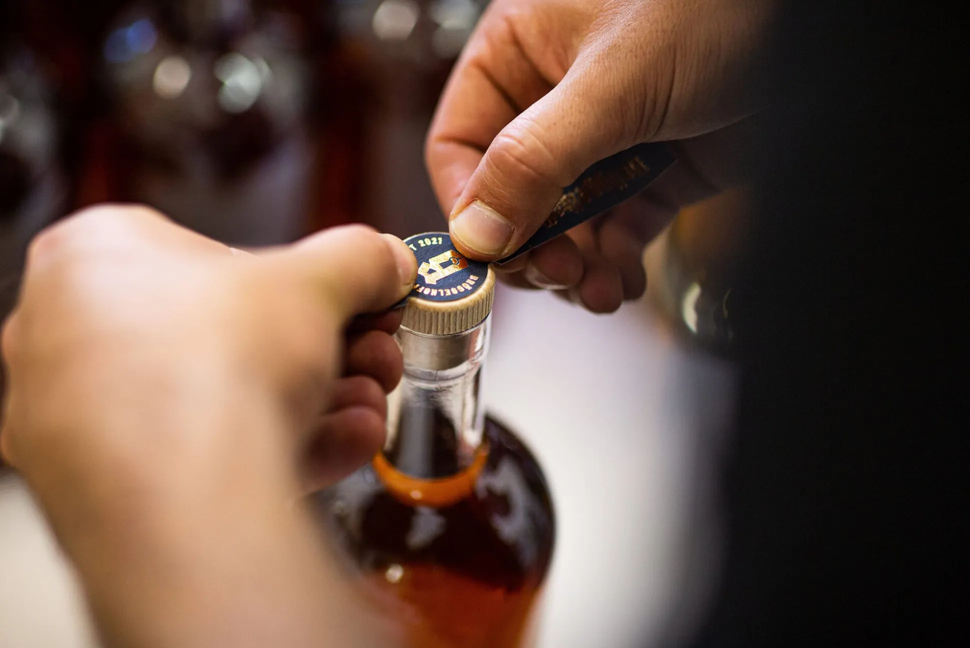 Warum in die Ferne schweifen? Sieh, das Gute liegt so nah. So kann man in diesem Fall mit Recht argumentieren, denn Bröggelhoff ist tatsächlich fast nur einen Steinwurf entfernt vom Manufactum Stammsitz in Waltrop zu Hause. Doch es ist weniger die räumliche Nähe, als vielmehr die herausragende Qualität der Destillate, die uns bewogen hat, diese in unser Sortiment aufzunehmen. Hinter der Marke Bröggelhoff steht das 2021 gegründete Start-up von Fabian Bröggelhoff und Jens Benthaus. Beide verband schon länger der Wunsch, gemeinsam ein Produkt zu kreieren – und beide waren fasziniert von den Möglichkeiten der Fassreifung, wie man sie etwa auch vom (dem Korn durchaus verwandten) Whisky kennt. Mit Expertise – der Name Bröggelhoff steht in Waltrop seit Jahrzehnten für Qualitätskorn –, dem Anspruch, den bestmöglichen Korn zu produzieren und viel Leidenschaft für diese Arbeit machten sich die beiden ans Werk. Destilliert wird in einer westfälischen Partnerbrennerei, die eine eigene Biogasanlage betreibt.