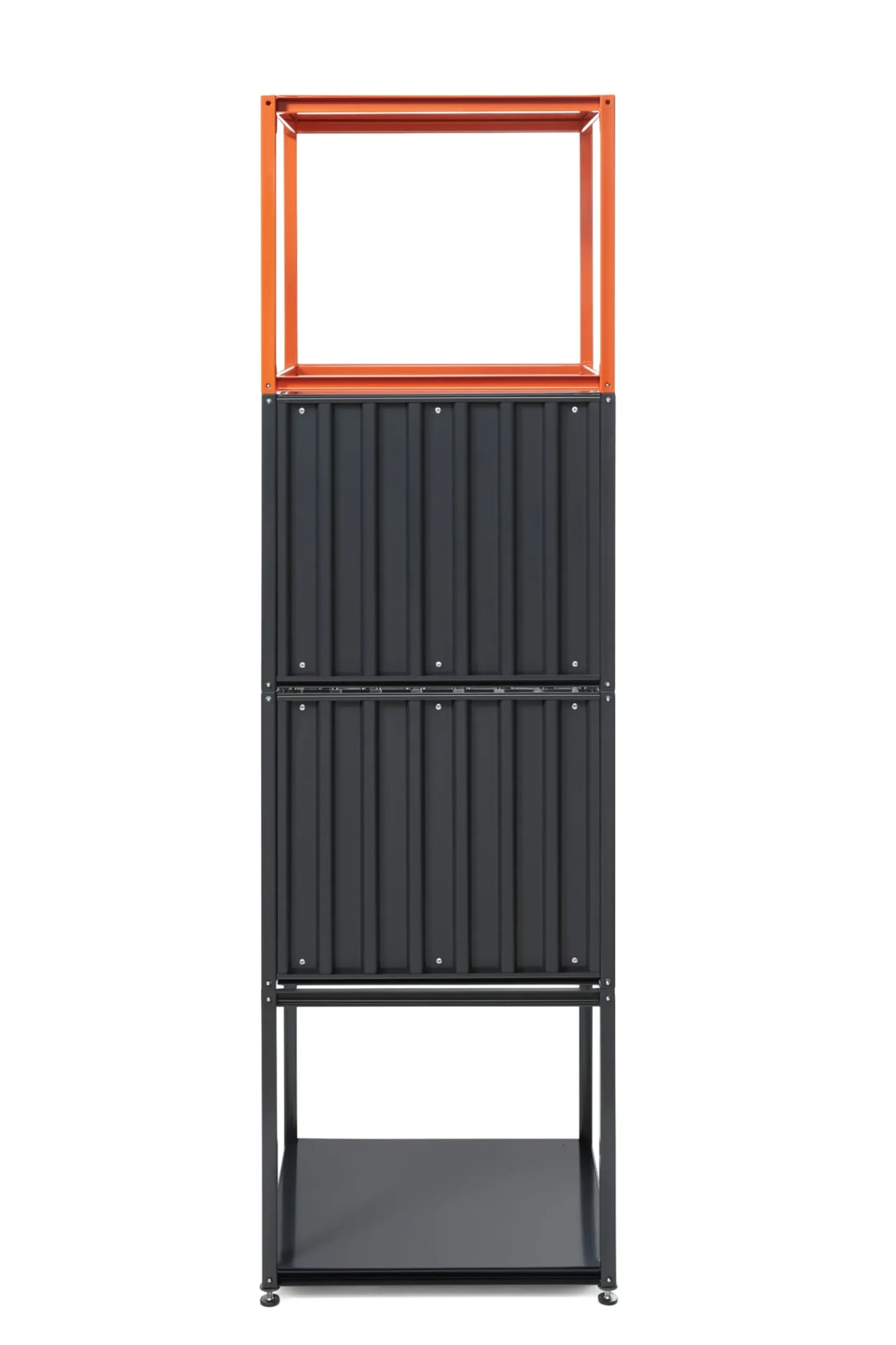 Der Große: Ein ganz besonderes Möbel mit eigenem Nutzungsspektrum ist der CONTAINER DS PLUS. Er ist im Hochformat einsetzbar und dient als spindähnlicher Kleider- oder Garderobenschrank und ist darüber hinaus auch als großvolumiger Schrank, einzeln oder übereinandergestapelt in Küche, Büro oder an anderen Plätzen einsetzbar. Dieser große Container ist wie alle anderen Schwestermodelle über mitgelieferte Vierkantverbinder stapelbar. Eine Kleiderstange ist im Lieferumfang enthalten, ein speziell konstruierter Fachboden sowie ein Abdeckboden sind separat als Zubehör lieferbar.