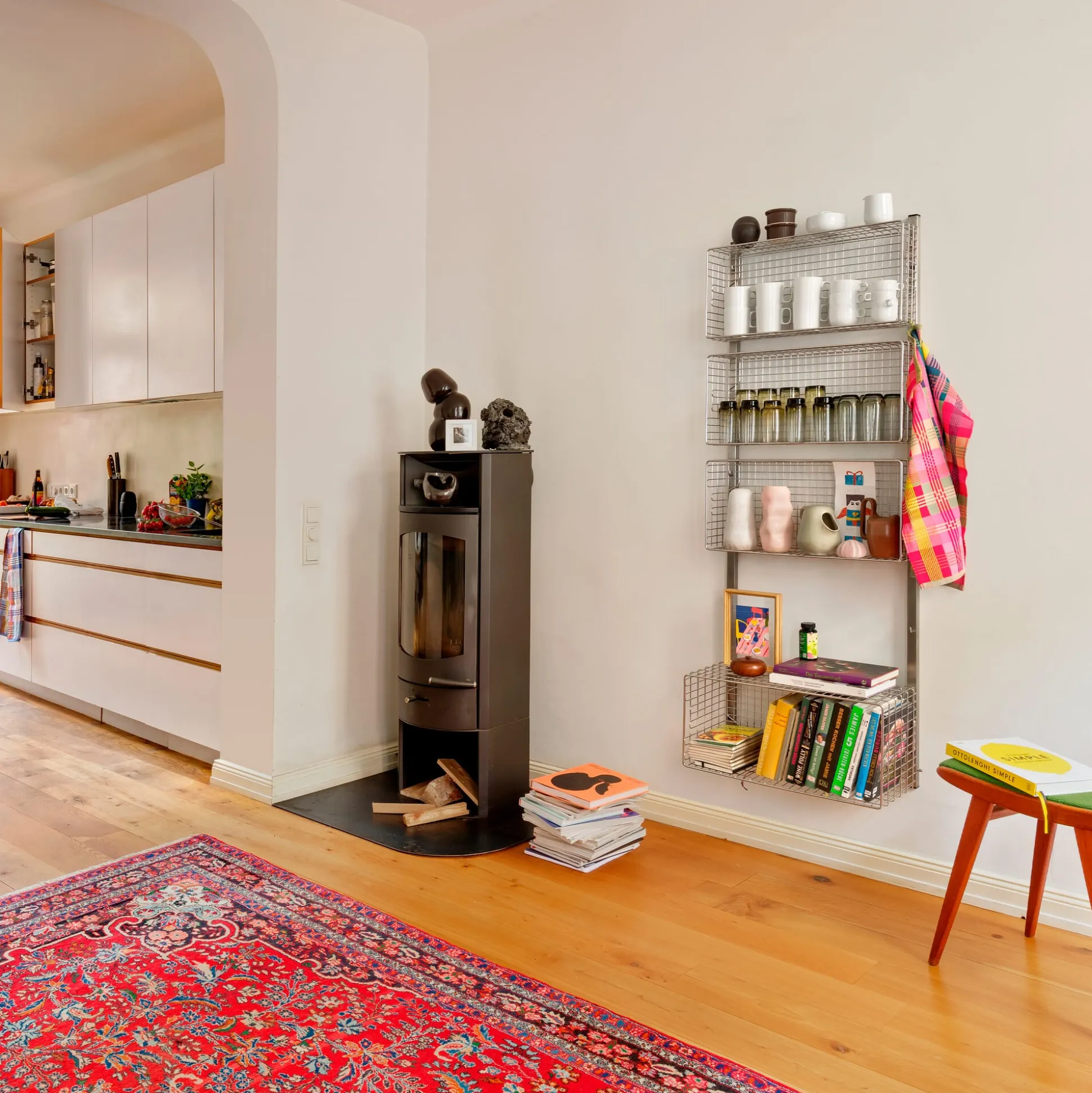 Das Regalsystem INOX wurde als Stauraumsystem für Sterilgut und Sterilkleidung entwickelt und hängt als solches in Laboren und anderen sterilen Räumen. Wir nutzen es kurzer Hand für den Wohnraum: als variables Staumöbel für Wohnbereich, Bad, Küche, Flur oder Schlafzimmer. Hier im Set aus zwei Wandhakenschienen, drei kleinen Körben (Höhe 13,5 cm) und einem großen Korb (Höhe 26,5 cm). Sie bieten belüfteten und gut einsehbaren Stauraum für allerlei Dinge: von Handtüchern, über Büromaterial bis hin zu Schals oder Fahrradhelmen. Praktisch: Bringt man die Körbe um 90 Grad gekippt, also mit der Öffnung nach vorne an, entsteht ein luftiges Regal mit Fächern in zwei unterschiedlichen Tiefen (13,5 cm und 26,5 cm) und industrieller Wirkung.