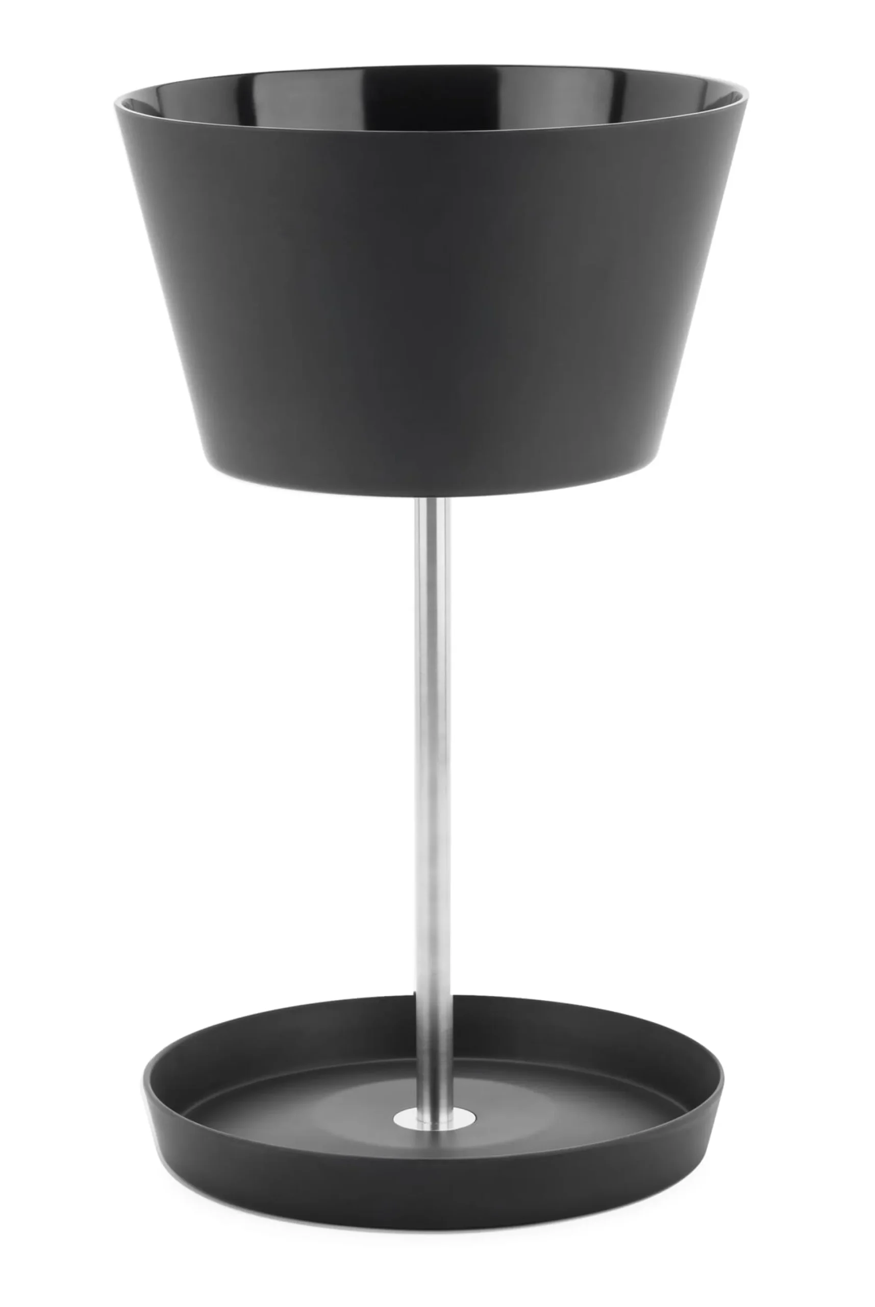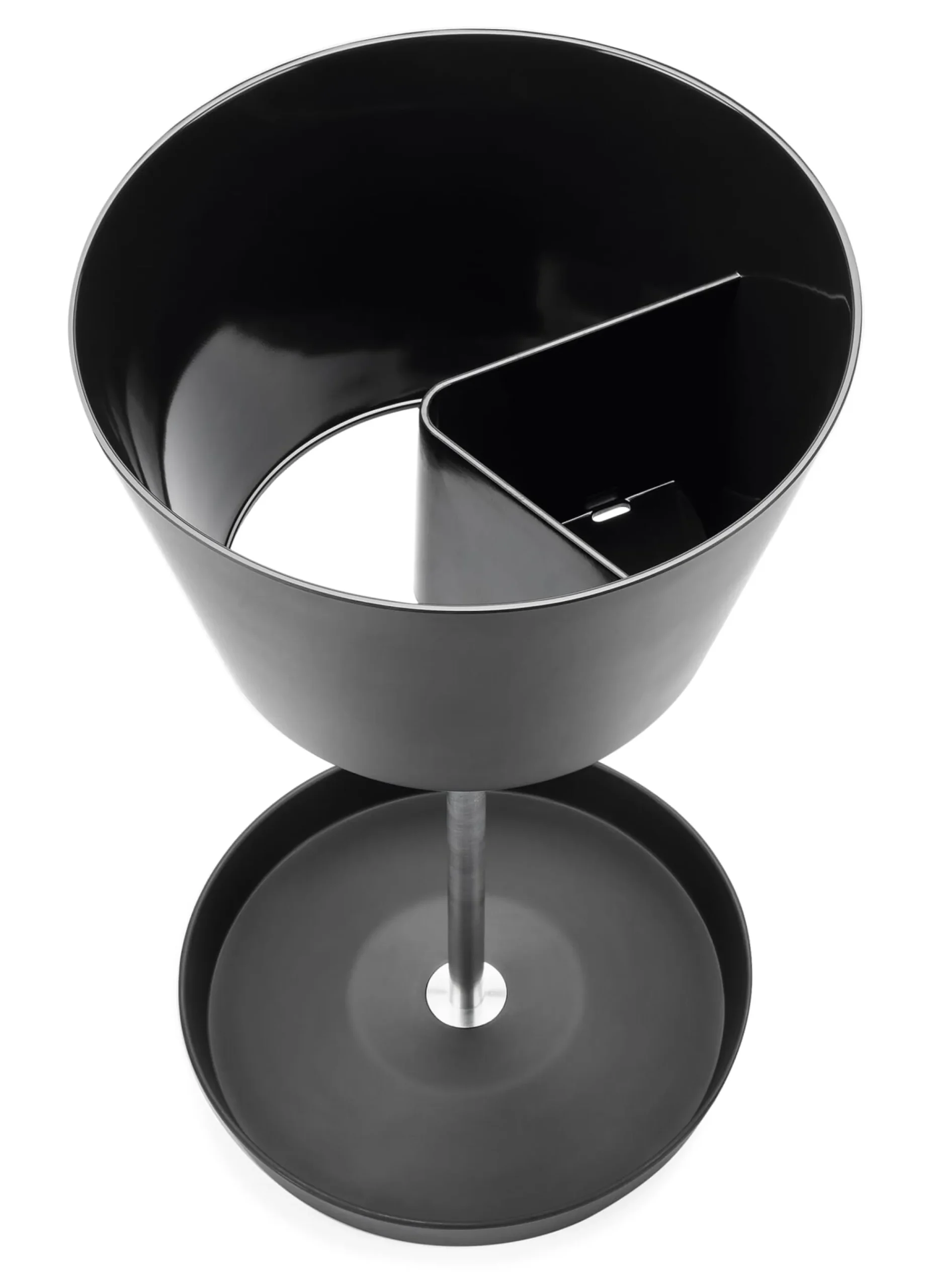 Ein klug gemachtes Ding: BASKET ist für Stockschirme und den kleinen Faltschirm gleichermaßen geeignet. Die untere Platte dient als Abtropfblech für nasse Gerätschaften, das obere kragenförmige Teil hält hohe Schirme und bietet gleichzeitig ein separates Staufach für die kleinen Schirme.