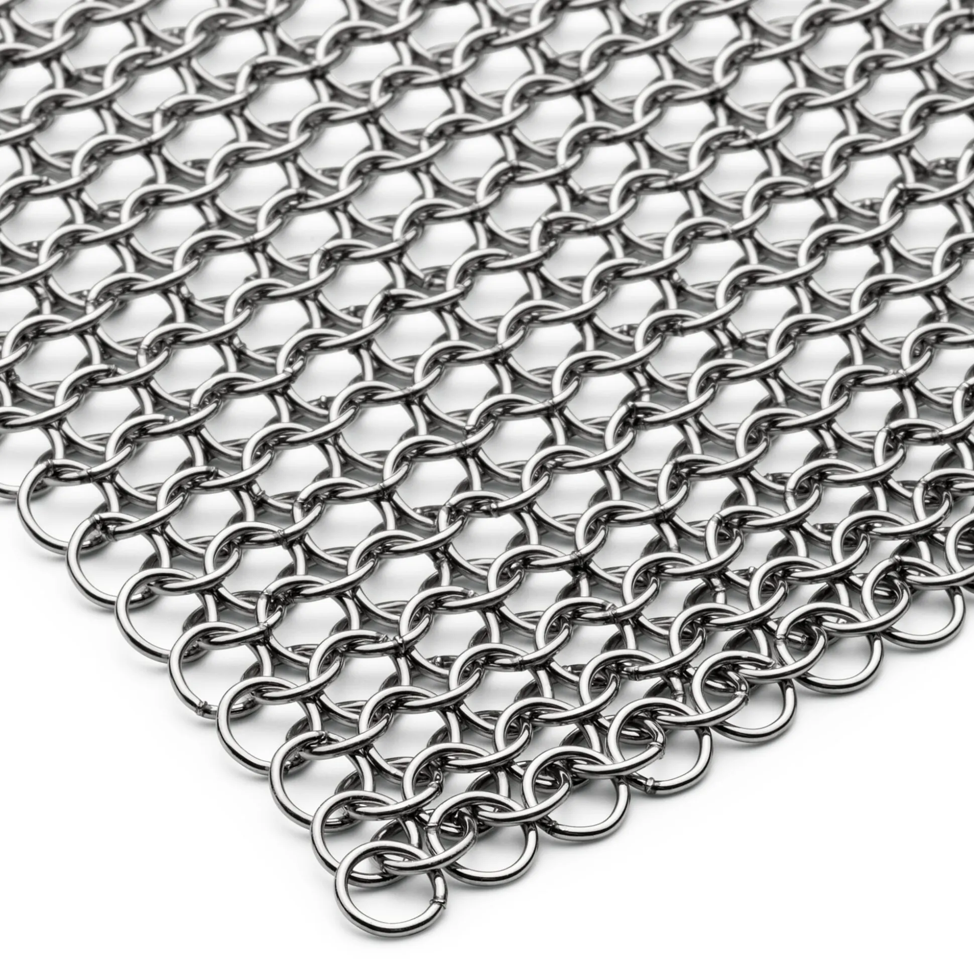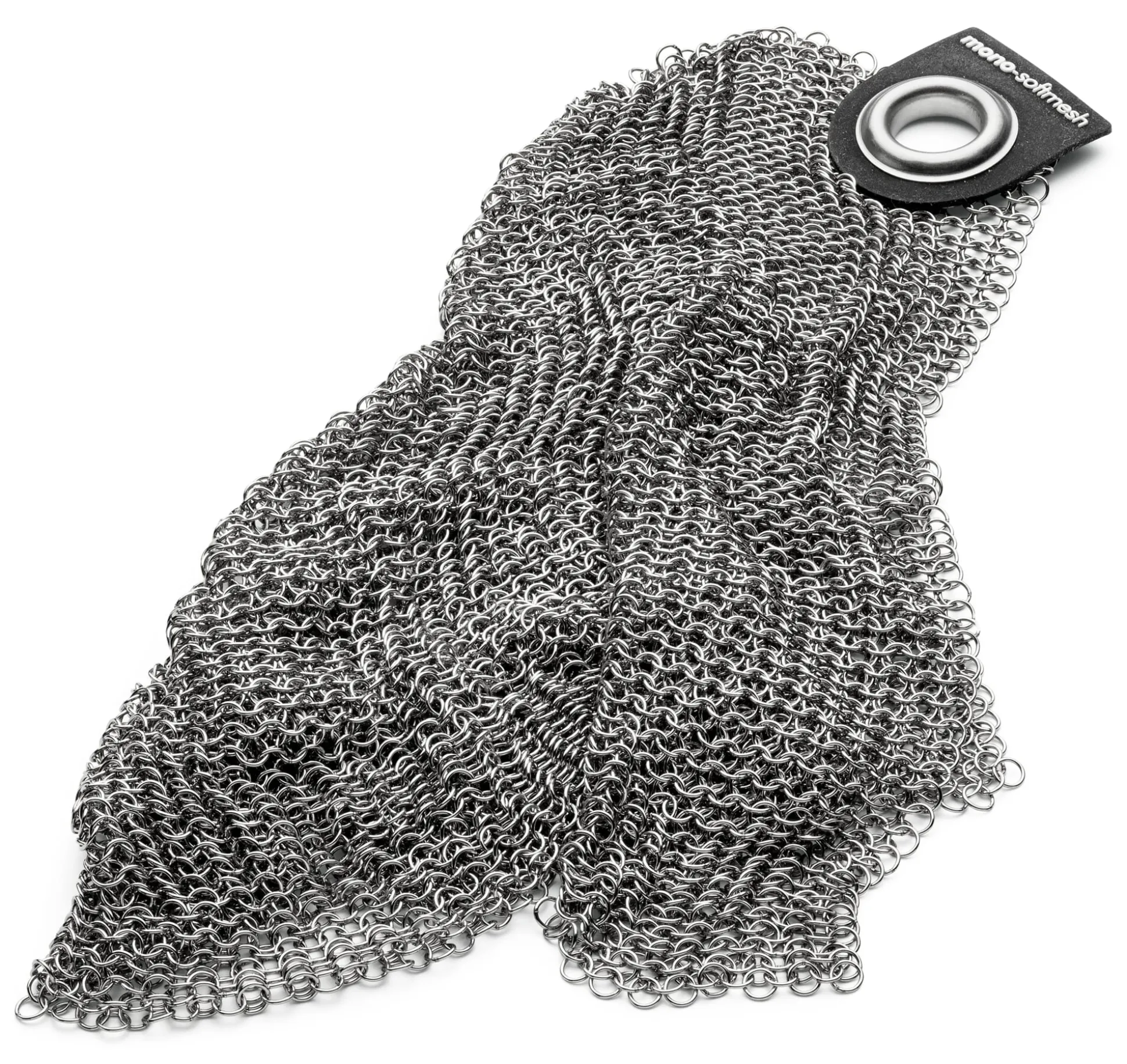 Was ein wenig an Kettenhemden oder -handschuhe erinnert, die zum Schutz beim Hantieren mit Messern getragen werden, ist ein Reinigungstuch für Töpfe und Pfannen. Aus 6.980 Edelstahlringen gefertigt, ist es ein flexibles, dennoch hartes Maschennetz. Jeder einzelne Ring wird nach dem Ineinanderfügen mit den Nachbarringen sorgfältig verschweißt und entgratet, sodass ein unverwüstliches Tuch ohne scharfe Ecken und Kanten entsteht. Mit den runden Edelstahlringen können Metalloberflächen von Töpfen und Pfannen effektiv und sanft gereinigt werden, ohne sie zu verkratzen. Mühelos lassen sich mit dem Edelstahltuch harte Krusten oder Angebranntes von Töpfen und Pfannen (jedoch nicht für beschichtete), Auflaufformen oder Backblechen entfernen, auch Grillroste reinigt es ebenso effektiv wie eine Drahtbürste. Dabei ist es sanft genug, um die schwer erreichbaren Innenflächen von Dekantierkaraffen oder Vasen zu säubern: Etwas Spülmittel, Wasser und Softmesh-Reinigungstuch in die Vase oder Karaffe geben, ein paar Mal schwenken und gründlich ausspülen. Den Oberflächen von Gartenmöbeln aus Holz können Sie damit ebenfalls effektiv zu Leibe rücken, bevor Sie sie am Ende der Saison einräumen.