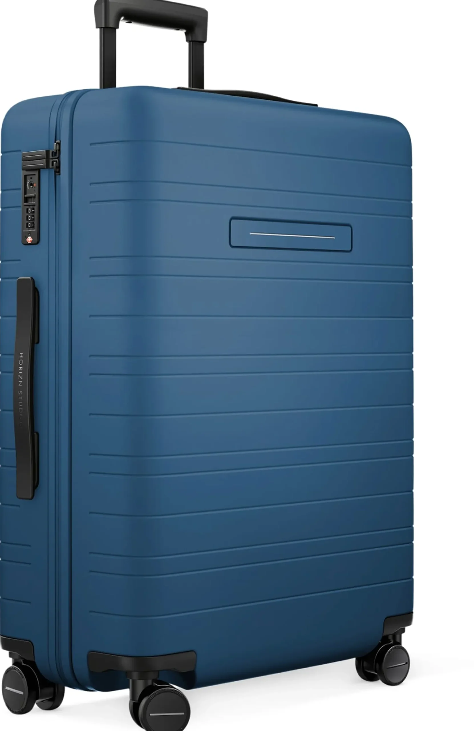 Koffer H6 von Horizn Studios – ideal für eine Reisedauer von 5 bis 10 Tagen. Schöne schlanke Form, leicht und mit seiner Außenhaut aus hochwertigem Polycarbonat maximal robust. Der leichtgängige Teleskopgriff verschwindet komplett in der Rückseite der Schale, flache Griffe schmiegen sich an zwei Seiten an das Gehäuse. Dank der vier hochwertigen teilintegrierten 360°-Drehrollen ist der Koffer wendig und gut zu handhaben. Der umlaufende 2-Wege-Reißverschluss und das integrierte TSA-Zahlenschloss sorgen für komfortables und sicheres Öffnen und Schließen. Für die optimale Nutzung ist der Koffer mit Mesh-Raumtrennern aus 100 % recycelten und wasserabweisenden Materialien ausgestattet.