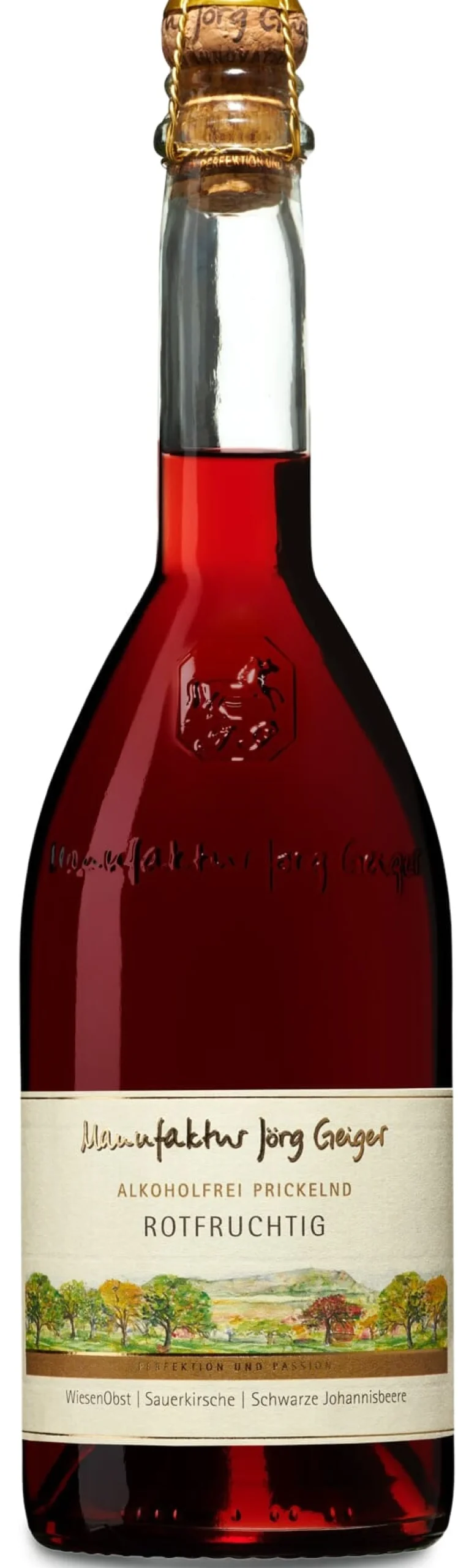 Saftiges, fruchtiges und mundfüllendes Erfrischungsgetränk aus Äpfeln, Birnen, Sauerkirschen, schwarzer Johannisbeere, Holunder und Quitten. Wie all diese prickelnden Variationen von Geiger kann auch der Rotfruchtig alkoholfrei seinen alkoholhaltigen Verwandten spielend das Wasser reichen. Alkohol entsteht bei seiner Herstellung erst gar nicht: Der Saft wird bereits im Drucktank mit Kohlensäure versetzt. Mit seinem üppigen, ungemein erfrischenden Wohlgeschmack ist der Rotfruchtig alkoholfrei gerade auch beim Aperitif eine ebenbürtige Alternative zu echtem Schaumwein.