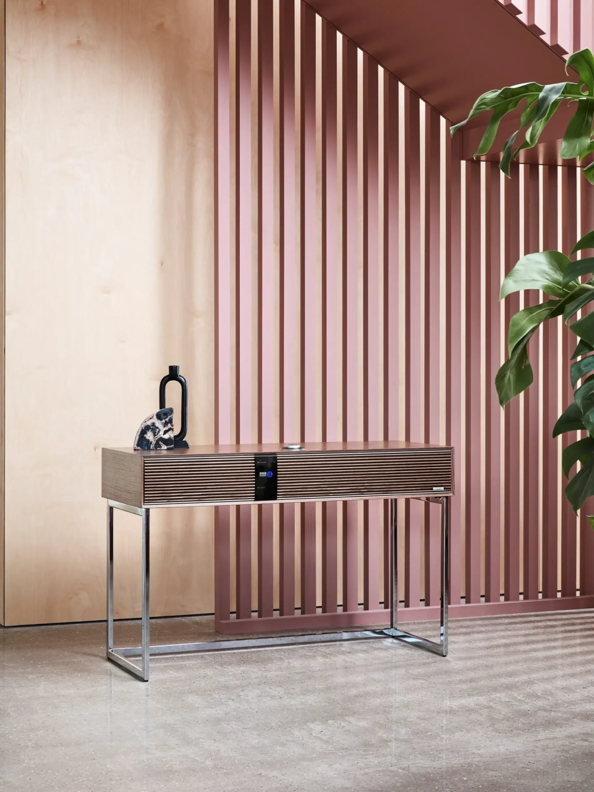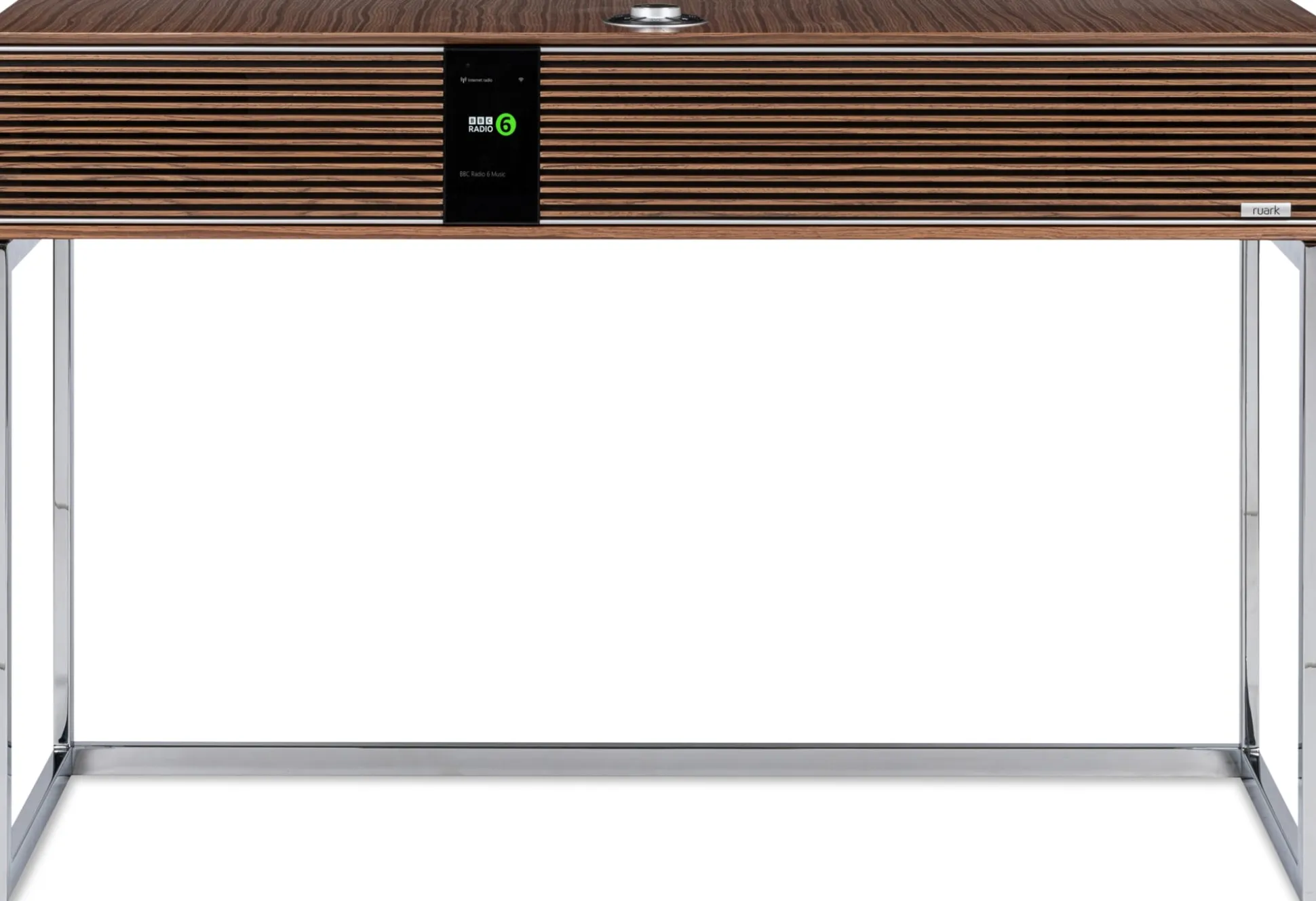 Der Musikschrank ist eine jener Stilikonen aus der Mitte des 20. Jahrhunderts, die untrennbar mit Namen wie Wilhelm Wagenfeld, Dieter Rams und Hans Gugelot verbunden sind. Später gerieten diese im besten Sinne designorientierten Tonmöbel in Vergessenheit – zu Unrecht, wie Ruark Audio dachte, denn die Hinwendung vom holistisch gestalteten Wohnobjekt zur kargen, blechernen Nacktheit von Stereoanlagen überzeugt durchaus nicht im Kontext mit jeder Einrichtung. Mit dem R810 hat Ruark Audio nun ein echtes Statement-Möbelstück auf den Markt gebracht, bei dem das Musikerlebnis im Zentrum Ihres Zuhauses steht. Das Ergebnis kann sich nicht nur sehen, sondern vor allem (was noch wichtiger ist) hören lassen. Das R810 greift die bewährten, von den Tischgeräten von Ruark Audio bekannten Gestaltungsmerkmale auf – die kantigen Formen, die Holzrippen auf der Front, das intuitiv nutzbare runde Bedienelement sowie das aufgeräumte Display – und stellt sie buchstäblich auf eigene Füße.