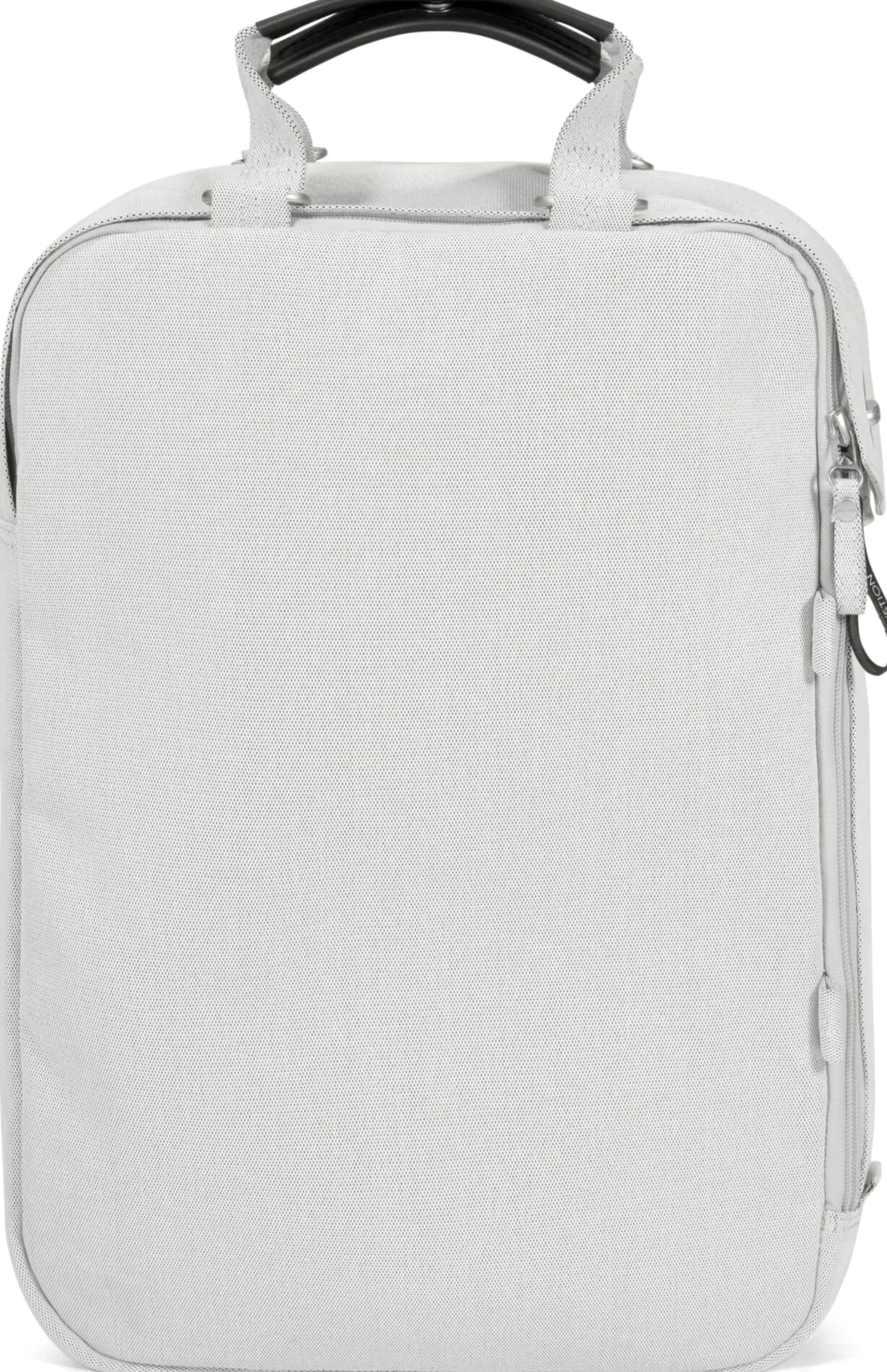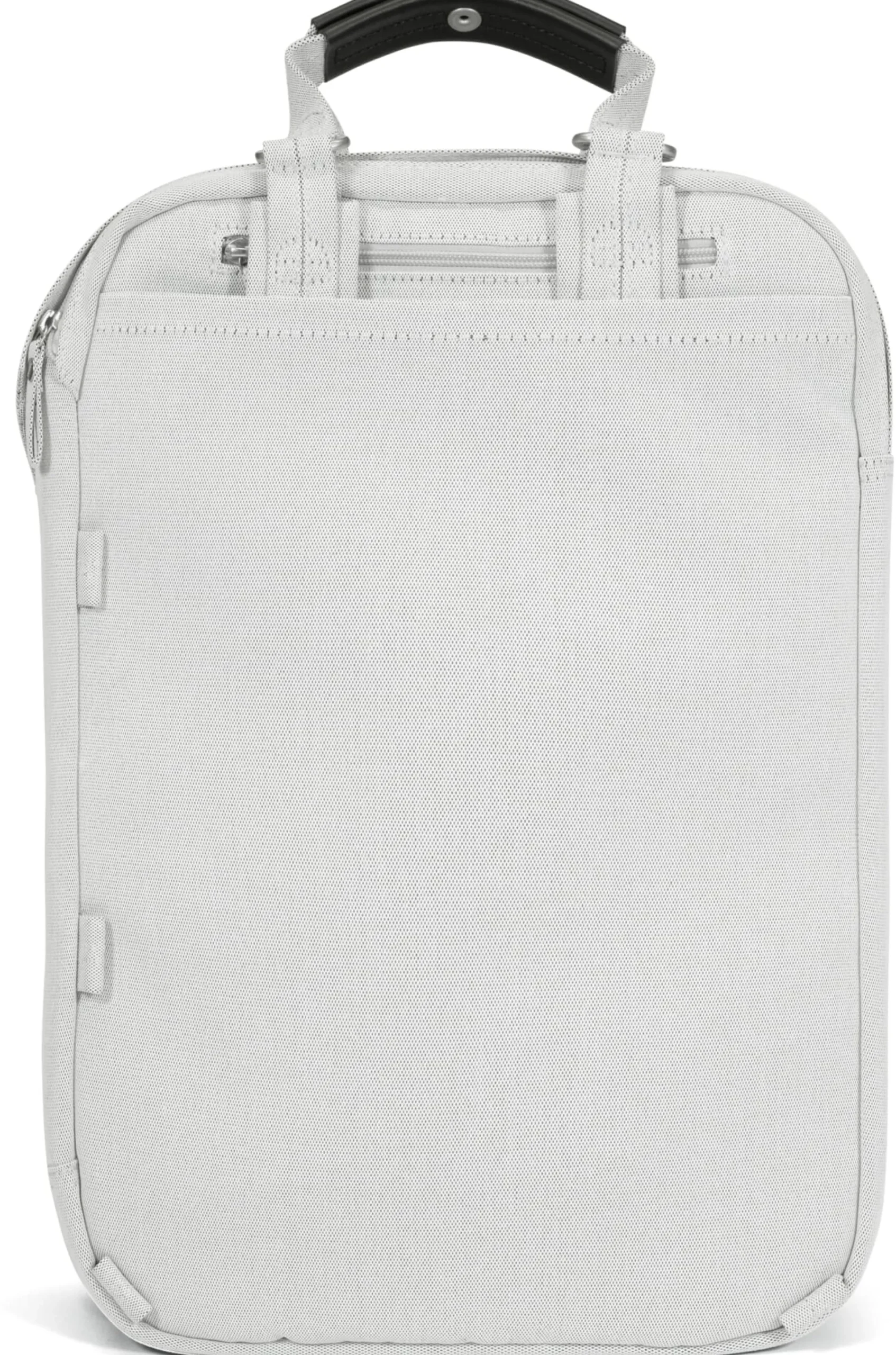 Durchdachter Rucksack für jeden Tag in minimalistischer, kubischer Form. Sein strapazierfähiges, plastikfreies und pflanzenbasiertes Bananatex-Außenmaterial ist regenfest und am Ende seines Rucksacklebens vollständig biologisch abbaubar. Ausgestattet ist der Alltagsrucksack mit 15 Litern Fassungsvermögen, einem großen und über YKK®-Reißverschlüsse und einem Drehverschluss zu öffnenden Hauptfach, einem gepolsterten Laptop-Fach für 16“-Notebooks und zusätzlichen Innenfächern zur Organisation von Arbeitsutensilien und allem Mitgenommenen. Ein zusätzlicher seitlicher Reißverschluss ermöglicht schnellen Zugriff auf die Innenfächer. Die abnehmbaren Tragegriffe aus vegetabil gegerbtem Rindleder können wahlweise oben oder seitlich angebracht werden, der gepolsterte Rücken und die verstellbaren Rucksackgurte sorgen für Komfort und Sitz.