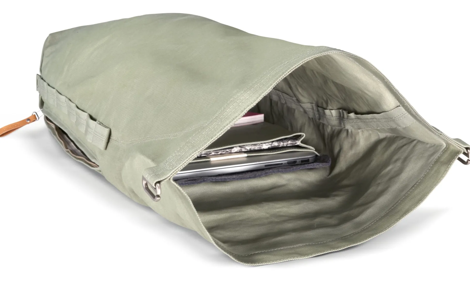 Im Hauptfach befinden sich Innenfächer in verschiedenen Größen, inklusive einem mit Merino-Filz gepolsterten Laptopfach, passend für bis zu 15 Zoll große Laptops. Eine spezielle Variante des bewährten YKK®-Metall-Reißverschlusses mit einem Band aus Baumwolle statt Plastik erlaubt schnellen und sicheren Zugriff zu den wichtigsten Inhalten. Die verstellbaren Rucksack-Gurte und ein modularer Griff aus vegetabil gegerbtem Leder ermöglichen verschiedene Trageoptionen.