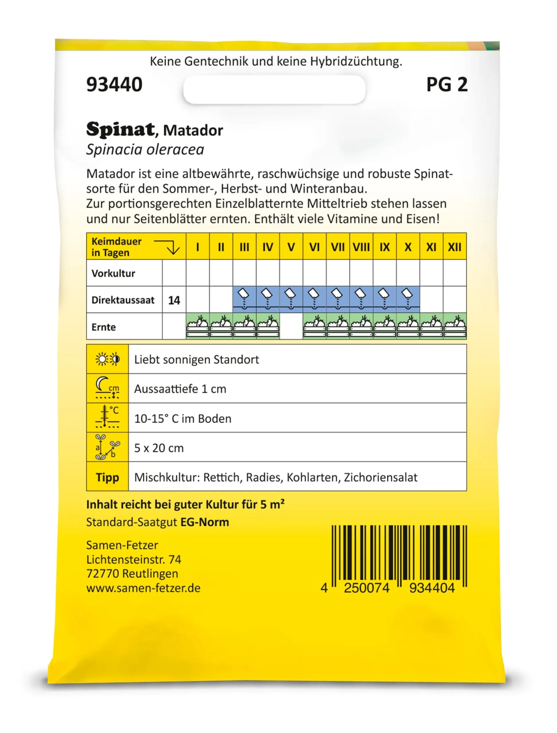 Eine altbewährte, raschwüchsige und robuste Spinatsorte mit dunkelgrünen, großen Blättern. Wenn Sie den Mitteltrieb bei der Ernte stehen lassen, wachsen stetig neue Blätter nach. So lässt sich der Erntezeitraum verlängern.