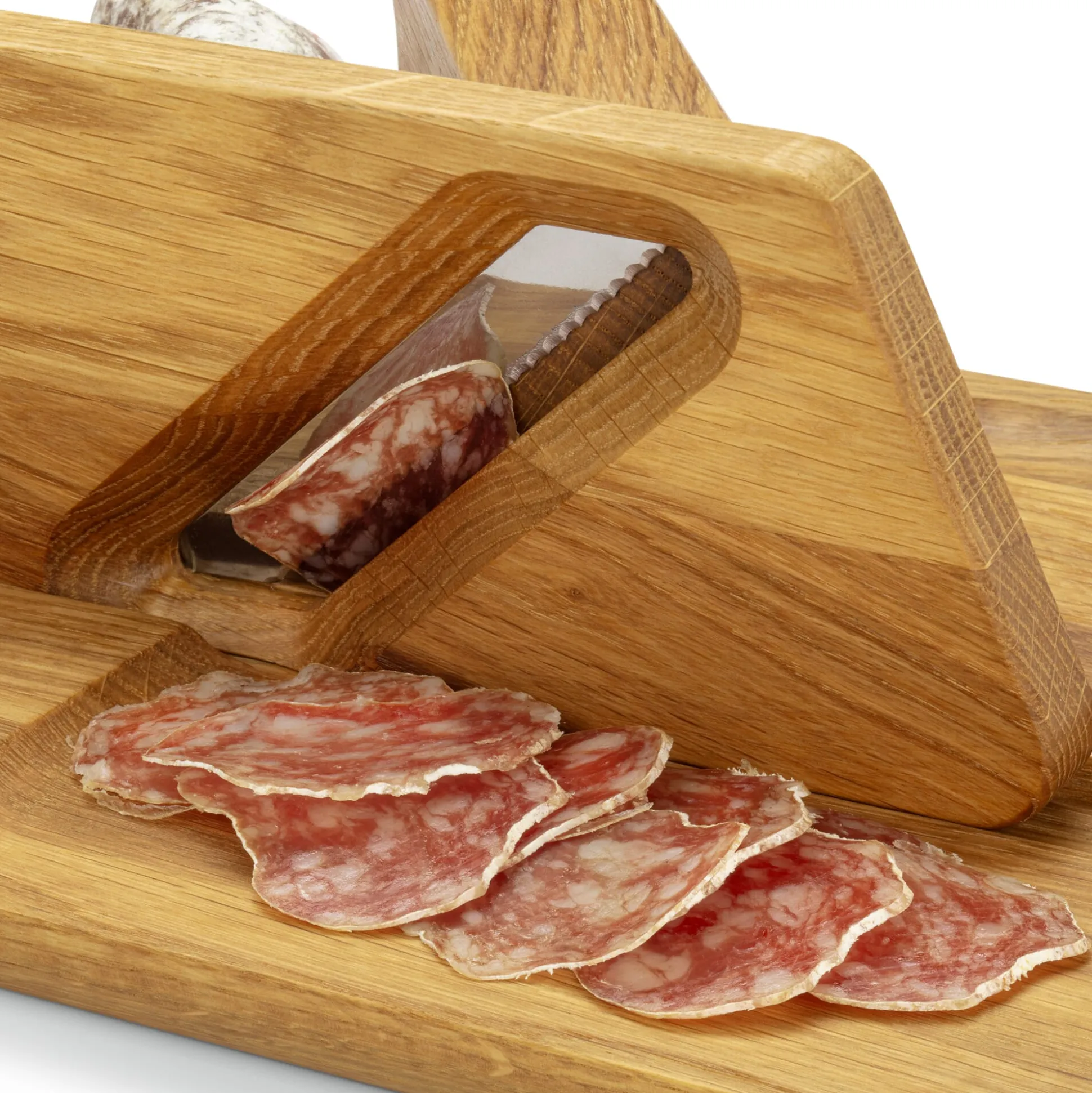 Snacks und Knabbereien gehören zum Aperitif wie Pastis oder Pimm’s, Kir oder Crémant. Mit unserem Salamihobel zaubern Sie im Nu Salamischeiben zum Naschen auf den Tisch. Ob Salami Lyonnais aus Frankreich, Salchichón aus Spanien, luftgetrockene Finocchiona aus Italien oder Ahle Wurscht aus Hessen … Das fein gezahnte Schweizer Messer von Victorinox schafft sie alle. Der Korpus aus handschmeichelnd glatt geschliffenem und geöltem Eichenholz macht für sich genommen eine so gute Figur, dass der Salamihobel gern einen Paradeplatz bei Tisch einnehmen darf. Wir beziehen das schöne Teil von Evostil in Slowenien. Holz ist in dem Familienbetrieb kein Werkstoff wie jeder andere. So legt man großen Wert darauf, das Rohmaterial aus den umliegenden Wäldern und aus verantwortungsvoller Quelle zu beziehen. Auch die ordnungsgemäße Trocknung sowie Weiterverarbeitung vom Stamm bis zum zugesägten Stück werden in der eigenen Werkstatt vorgenommen. Die handwerkliche Qualität der Produkte von Evostil überzeugt uns ohnehin schon seit einer ganzen Weile.