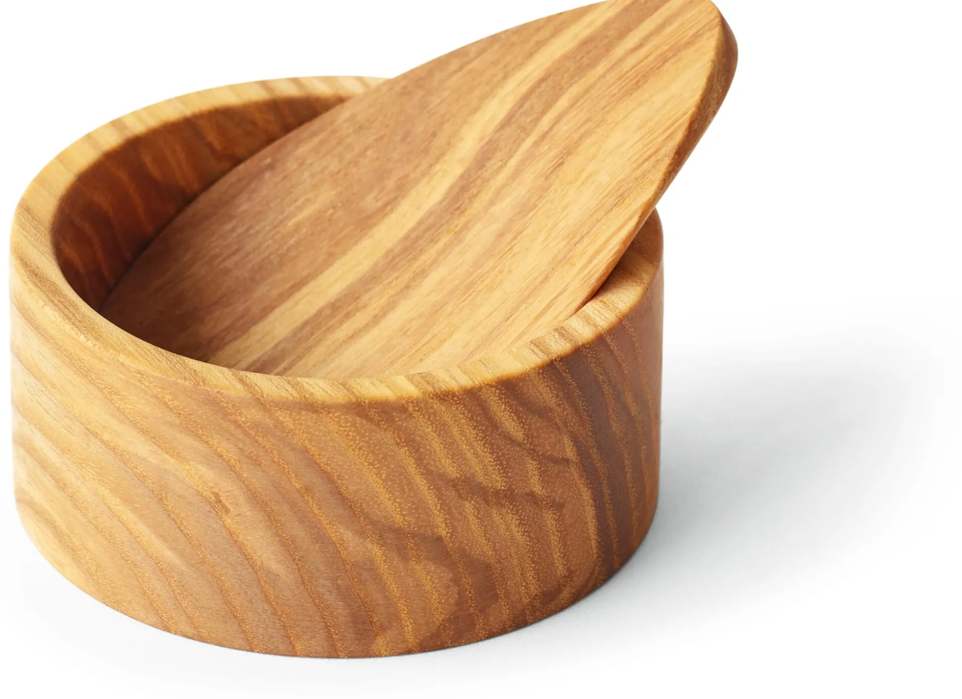 Charaktervolles Salzdöschen – handgedreht aus Eschenkernholz. Das ist besonders hart und formstabil und hat eine markante Maserung. Eingelassen mit Leinöl, wird das Holz unempfindlich und seine Maserung intensiv herausgearbeitet. Mit dem flachen Löffel, der gleichzeitig als Deckel dient, lassen sich auch feine Salzflocken behutsam und ohne zu brechen entnehmen und streuen. Ideal für die tägliche Schüppe feinen Salzes – am Esstisch oder am Kochtopf.