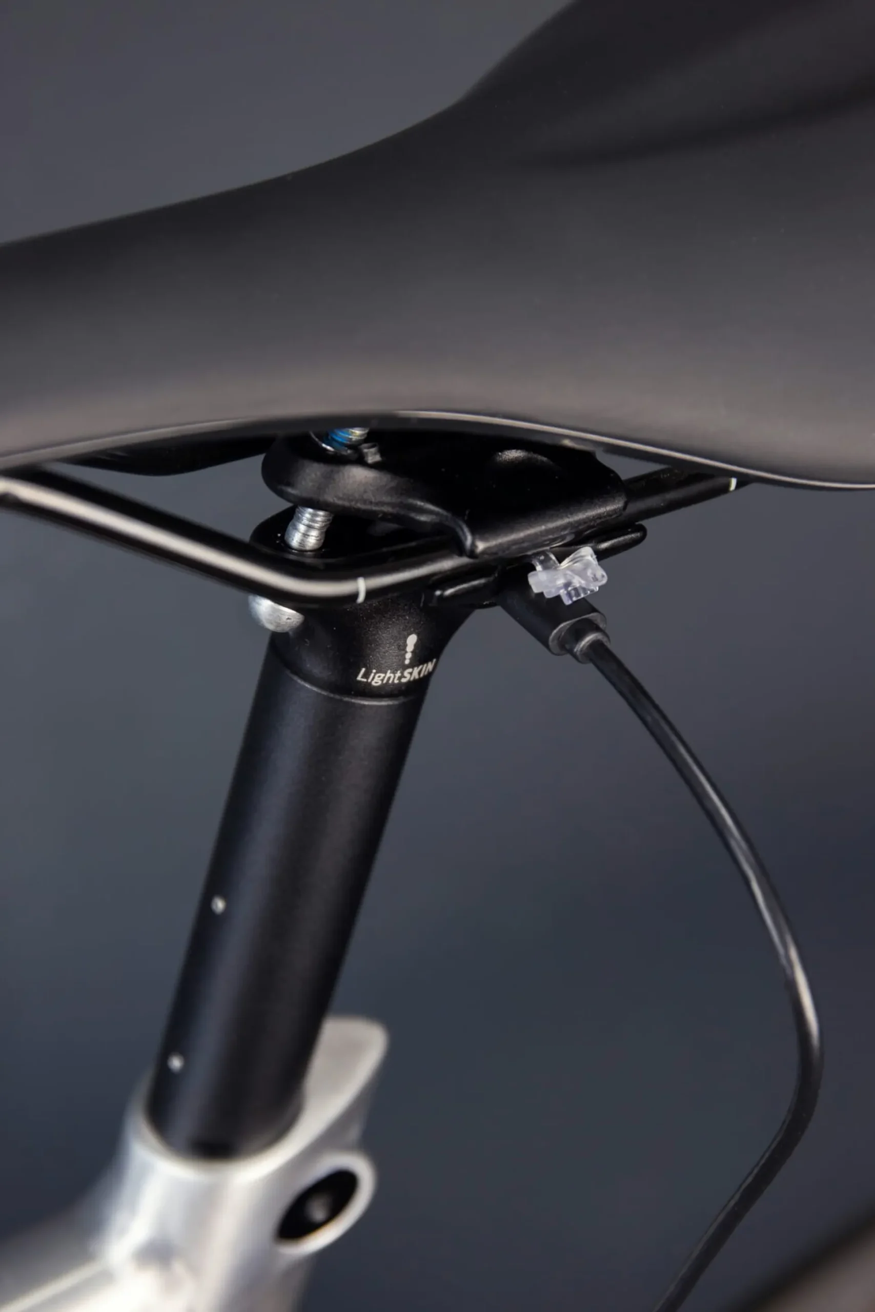 LIGHTSKIN ist Sattelstütze und Fahrradrücklicht in einem – und das neue Modell ist in Deutschland ohne Einschränkungen gemäß der StVZO zugelassen. Der 750 mAh Lithium-Polymer-Akku ist im Inneren der Stütze verbaut und per Micro-USB aufladbar. Eine Demontage der wetterfesten Stütze ist nicht nötig, denn der Micro-USB-Zugang befindet sich an der Sattelklemme. Das mitgeliefert Micro-USB-Kabel kann an Laptop, Smartphone-Ladegerät oder Powerbank angeschlossen werden. LIGHTSKIN verfügt über fünf helle LED-Leuchten, die für blendfreie Sichtbarkeit aus jedem Winkel sorgen. Die unteren beiden LED-Dioden können bei Bedarf (je nach Rahmen- und Körpergröße) im Sattelrohr versenkt und energiesparend ausgeschaltet werden. Die Steuerung der Rückleuchte wird durch den zweiten LED-Knopf angesteuert: Damit lässt sie sich An- und Ausschalten sowie auch zwischen dem 3-LED- oder 5-LED-Modus wechseln. Bei einer Leuchtdauer von 10 (5 Dioden) bis 15 Stunden (3 Dioden) sind viele Fahrten bei Nacht möglich. Die von uns angebotene Sattelstütze besitzt das sehr verbreitete Maß 27,2 mm und lässt sich mit wenigen Handgriffen gegen eine vorhandene Stütze gleichen Durchmessers austauschen.