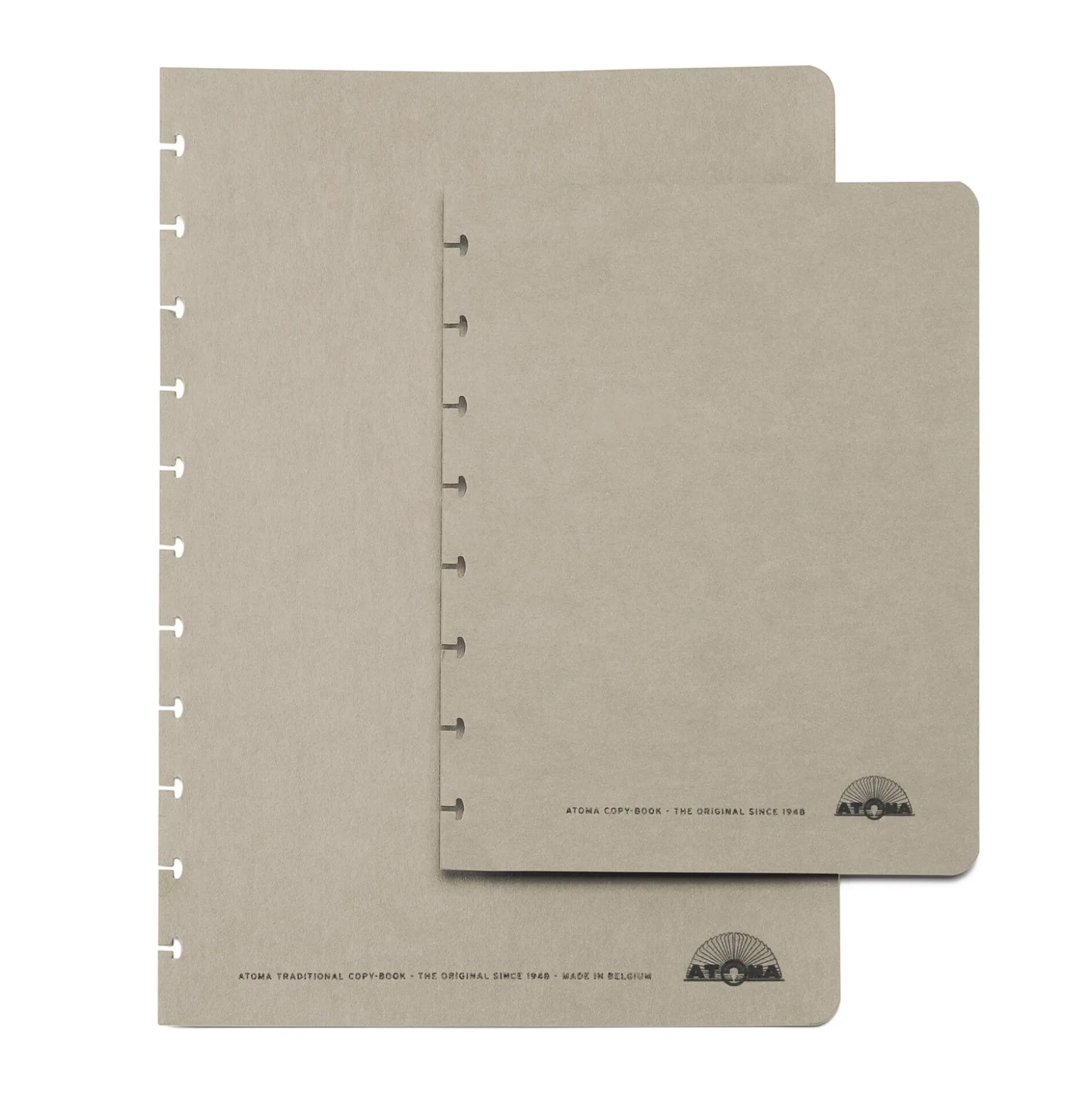 Das rund 70 Jahre alte belgische Notizbuchsystem Atoma besteht ausschließlich aus rollenden Ringen und fliegenden Blättern, wobei die Ringe die Blätter am Fliegen und die Blätter die Ringe am Rollen hindern – beides bleibt aber dank einer patenten Speziallochung der Blätter stets leicht voneinander lösbar. Sie können die diversen Formular-Einlagen Ihrer selbst zusammengestellten Notizbücher also jederzeit ergänzen, verändern und nach Bedarf mischen – auch mit Formularen, Kalender- oder Adressbuchdrucken, die Sie per PC und Drucker auf den Blanko-Formularen selbst erzeugen und mit dem Atoma-Locher mit der passenden Lochung versehen.