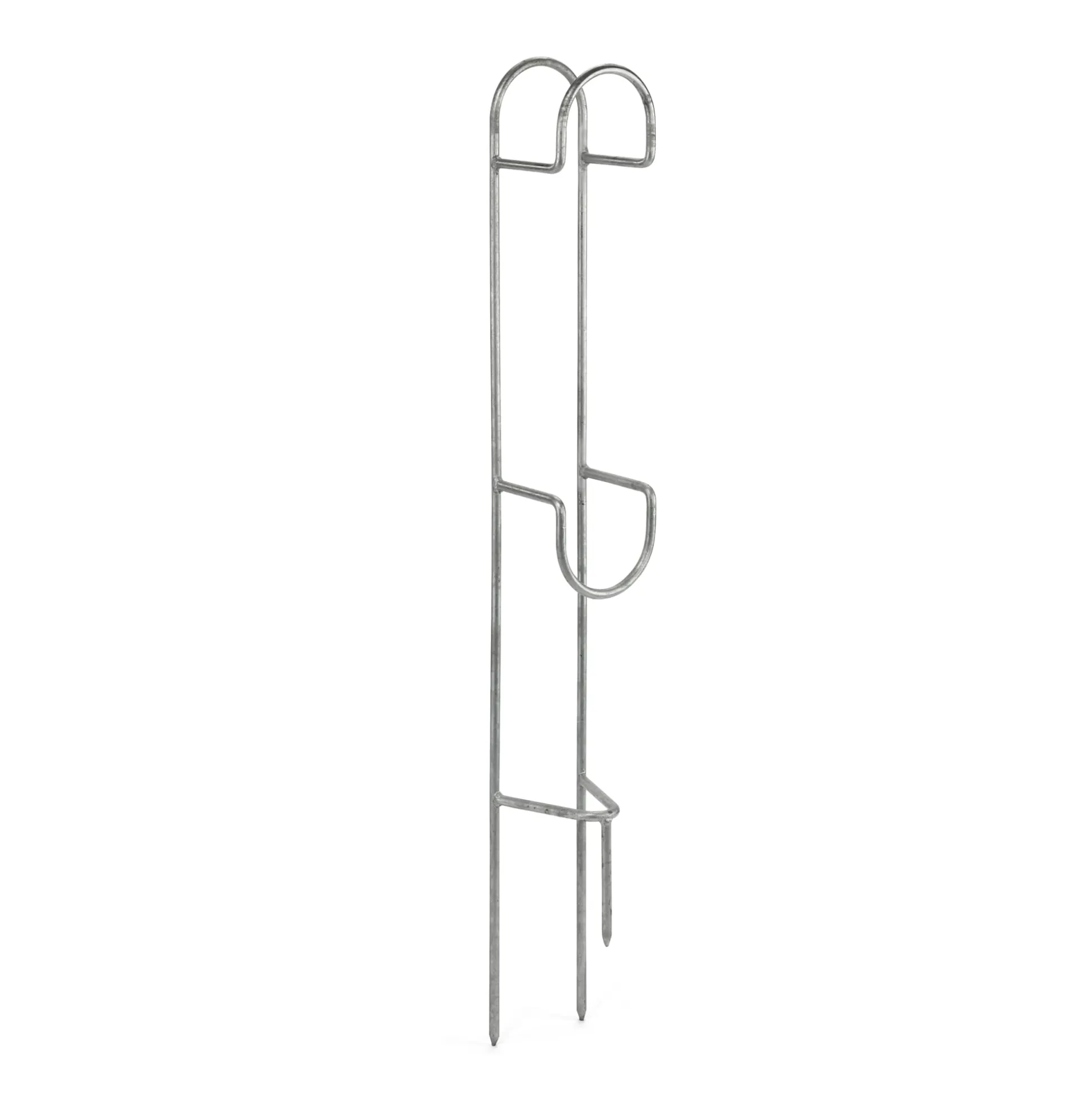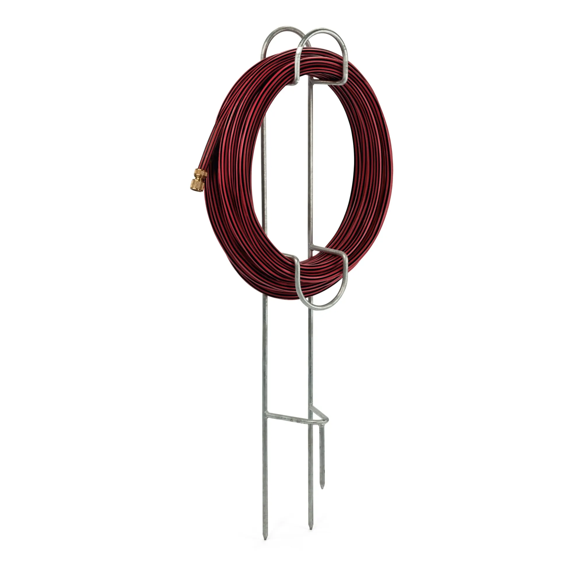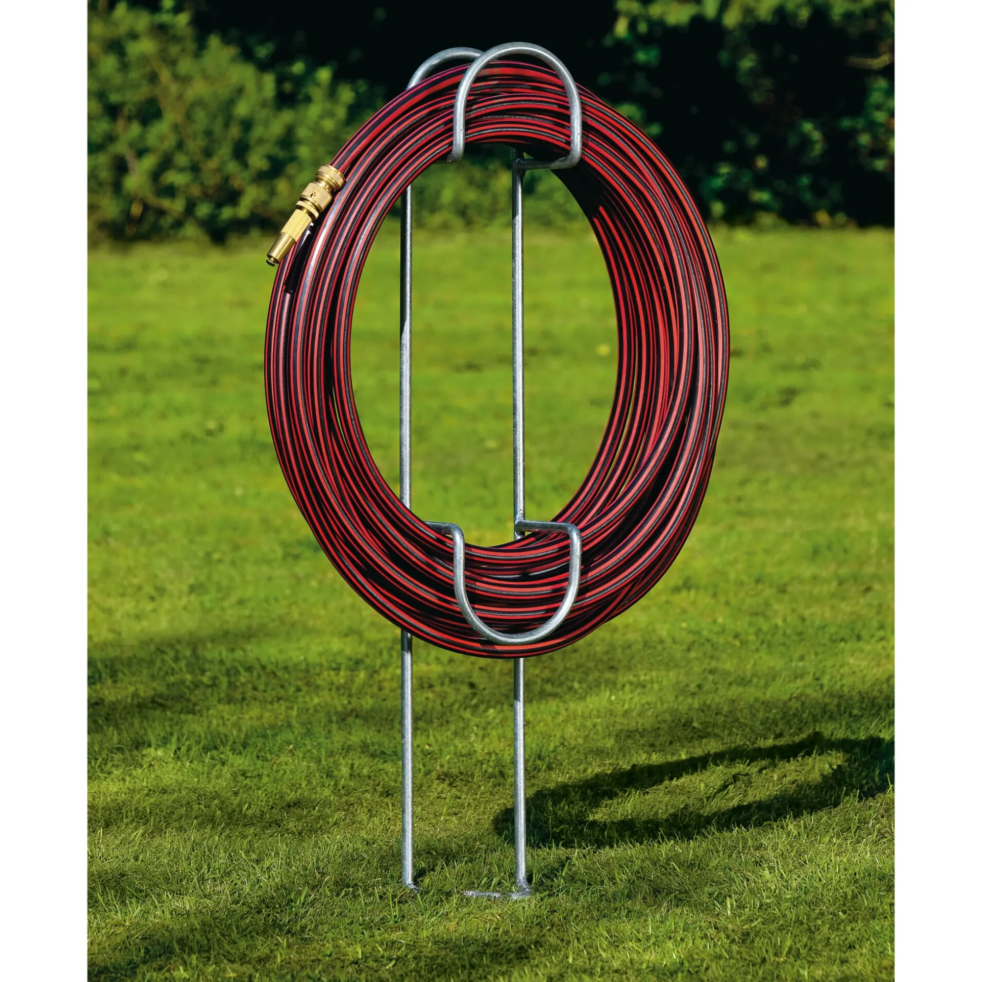 Hält den Gartenschlauch dort vor, wo er benötigt wird, ordnungsgemäß aufgewickelt und ohne eine Stolpergefahr darzustellen. Die stabile Halterung wird ohne eine weitere Befestigung in Wiese oder Beet gesteckt. Sie ist aus feuerverzinktem Stahl geschweißt und kann ganzjährig im Freien verbleiben – oder zu Beginn der kalten Jahreszeit mitsamt Schlauch in den Geräteschuppen verbracht werden. Die Schlauchhalterung wird bei einem Metallverarbeiter in Belgien gefertigt.