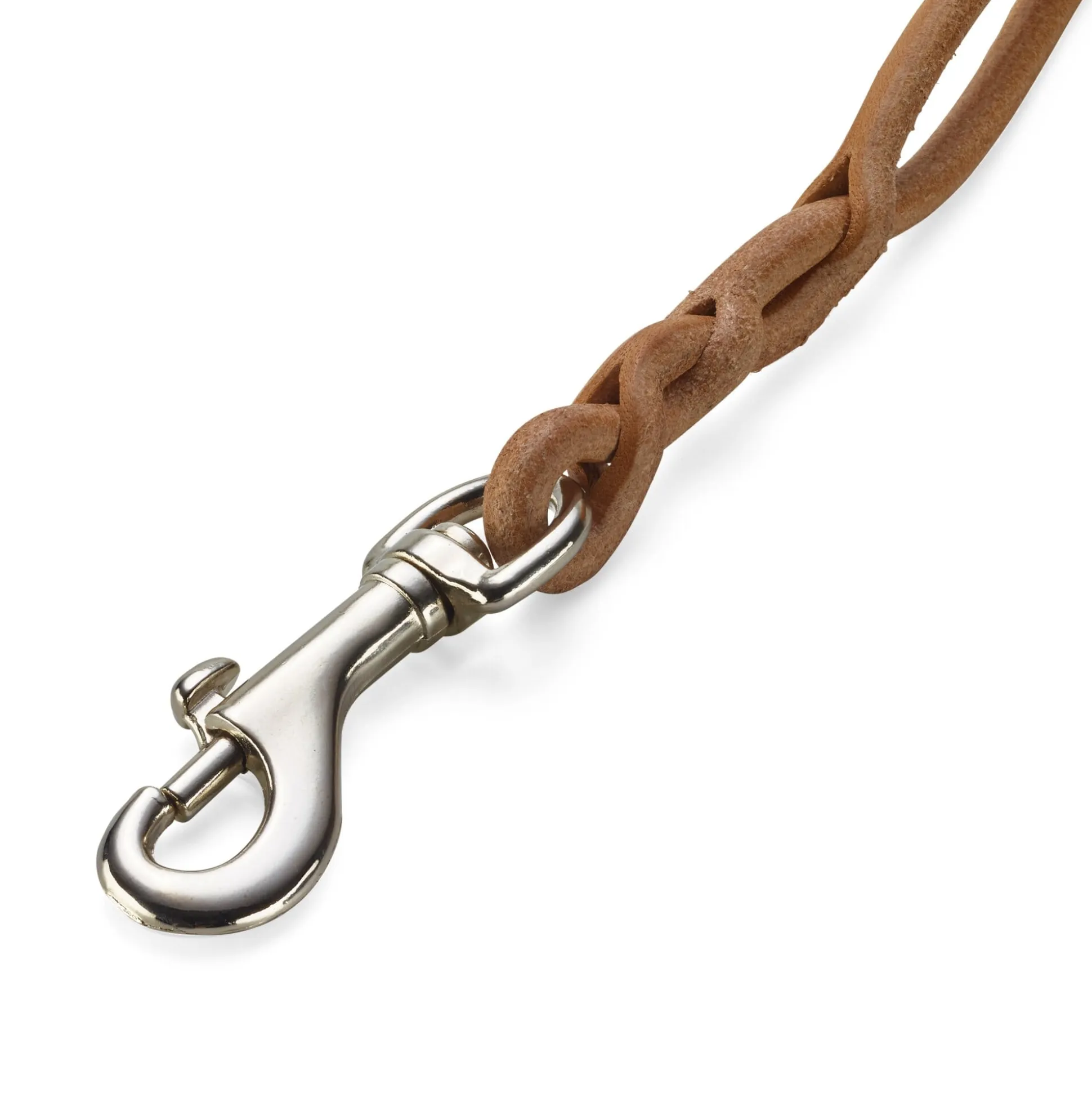 Rindleder (Stärke 5 mm), vegetabil gegerbt. Karabinerhaken (Länge 6 cm) aus vernickelter Zinkdruckgusslegierung. Hergestellt in Dänemark. Gesamtlänge 58 cm. Gewicht 40 g.