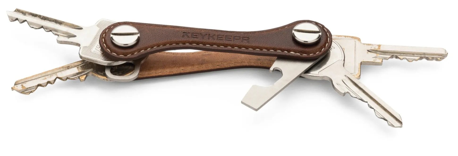 Der Schlüsselorganisator setzt sich zusammen aus zwei Hauptplatten, die von zwei Schrauben und Muttern gehalten werden. Mit Aufhängeöse und Flaschenöffner. Gefertigt in Deutschland.