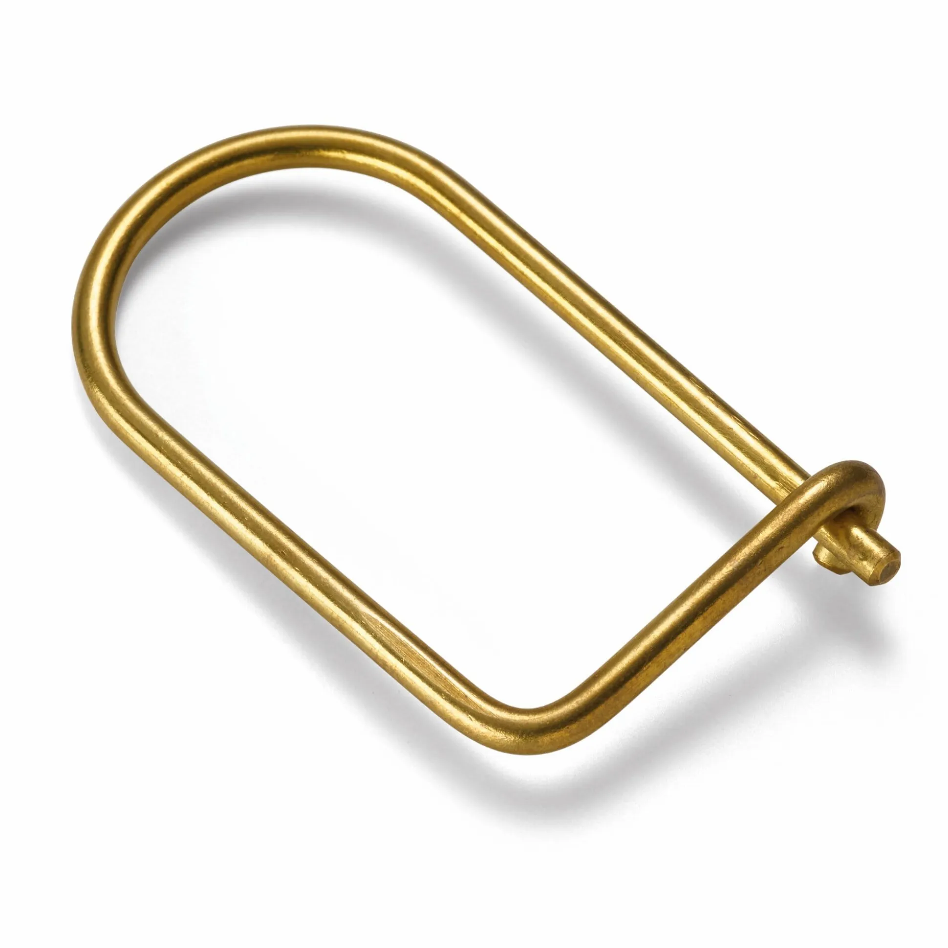 Kaltgeformt aus stabilem Messingdraht, steht dieser Schlüsselring so unter Spannung, dass eine einfache Hakenkonstruktion als Verschlussmechanik völlig ausreicht. Die filigrane Optik täuscht, denn der schlichte Ring kann auf diese Art und Weise diverse Schlüssel auf einmal halten. Hergestellt in den USA.