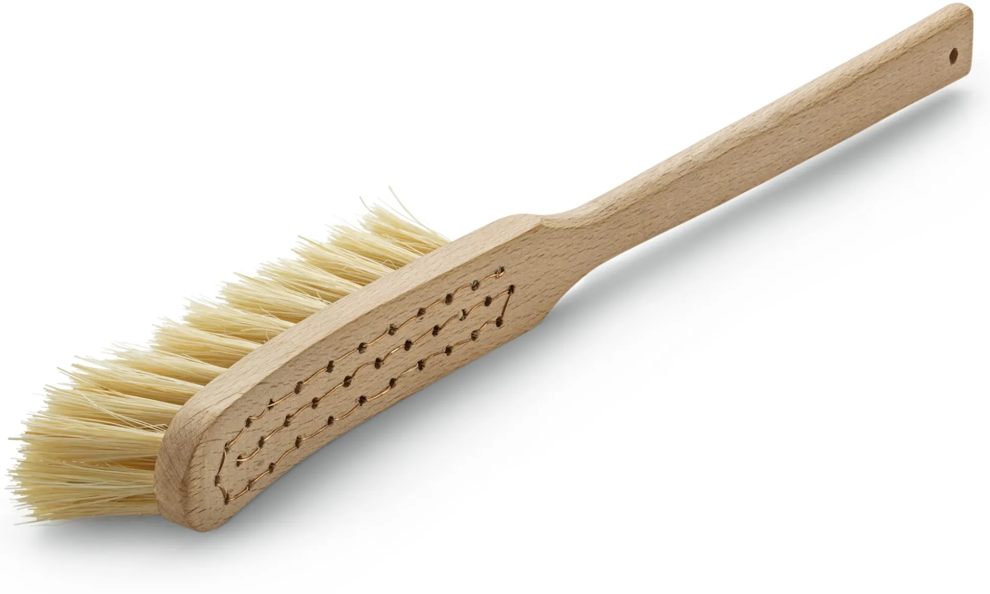 … oder Pendant zum Fugenkratzer: Mit dieser schlanken, handlichen Scheuerbürste rücken Sie dem Schmutz in Fugen, Ritzen und schmalen Zwischenräumen wirksam zu Leibe. Dafür sorgt ihr Besatz aus Fibre, so nennt man die Blattrippen der Agave. Die elastische, aber zähe Naturfaser ist sehr widerstandsfähig und unempfindlich gegen Säure, Lauge und Hitze. Korpus und Griff sind aus festem Buchenholz gefertigt, sodass Sie mit vollem Krafteinsatz schrubben können. Mit seinen abgerundeten Kanten liegt der Griff gut in der Hand. Und dank des leicht nach oben geschwungenen Bürstenkörpers lassen sich auch Ecken gut damit säubern.