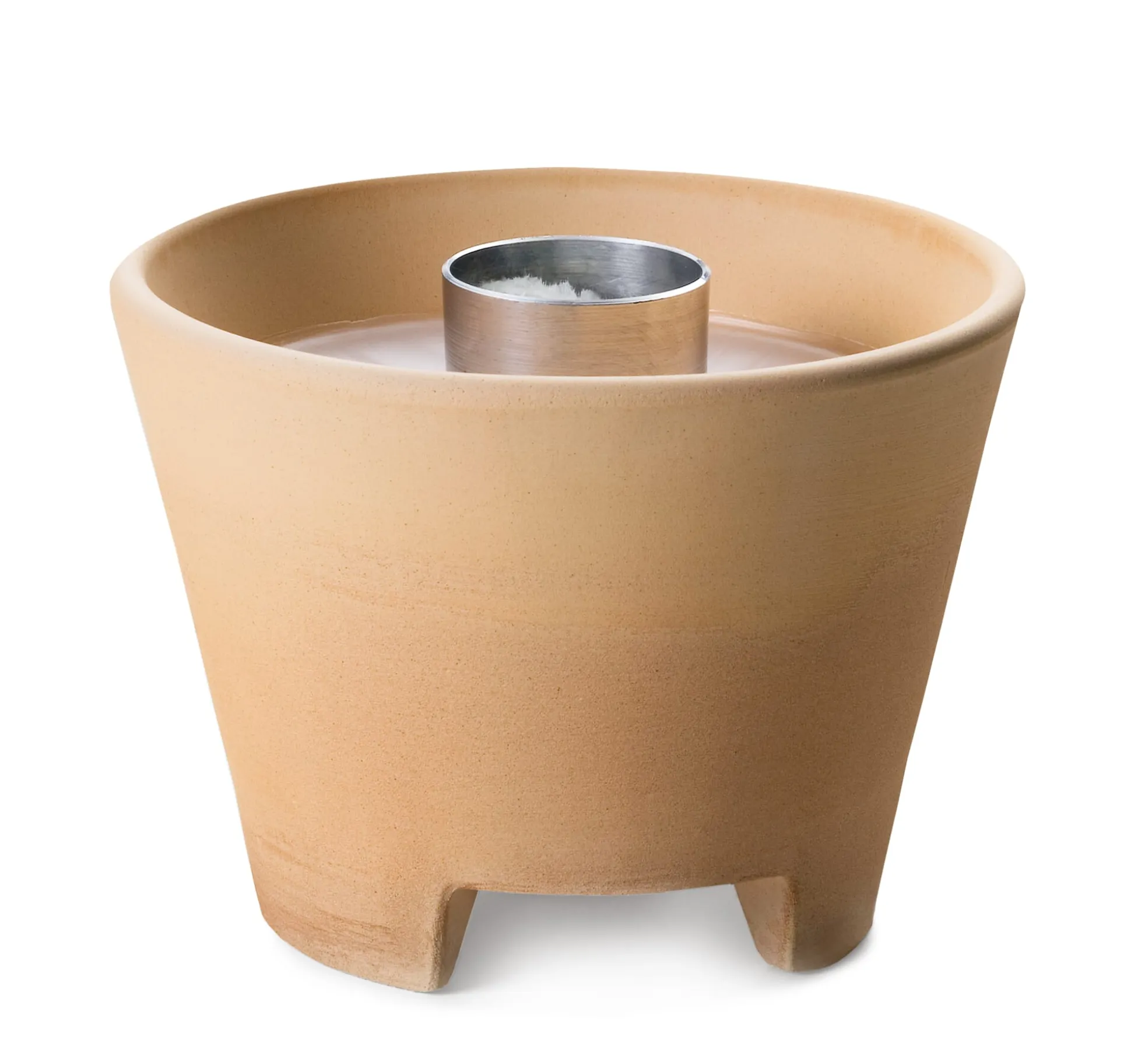 In diesem Keramiktopf steckt ein patentierter Aluminiumbrenner, der metallumwickelte Ewigdochte aus Glasfaser vorhält. Diese brennen nicht herunter und bedürfen auch keines Ersatzes, sie saugen ständig etwas von dem geschmolzenen Wachs im Topf nach und verbrennen es in einer stabilen Flamme. Der Topf selbst besteht aus stark schamottierter und gesinterter Keramik, als Nachfüllmasse eignen sich Wachsreste aus Kerzenständern oder von heruntergebrannten Kerzenstumpen (aus Paraffin, Stearin oder Ceresin – Bienenwachs ist eher ungeeignet).