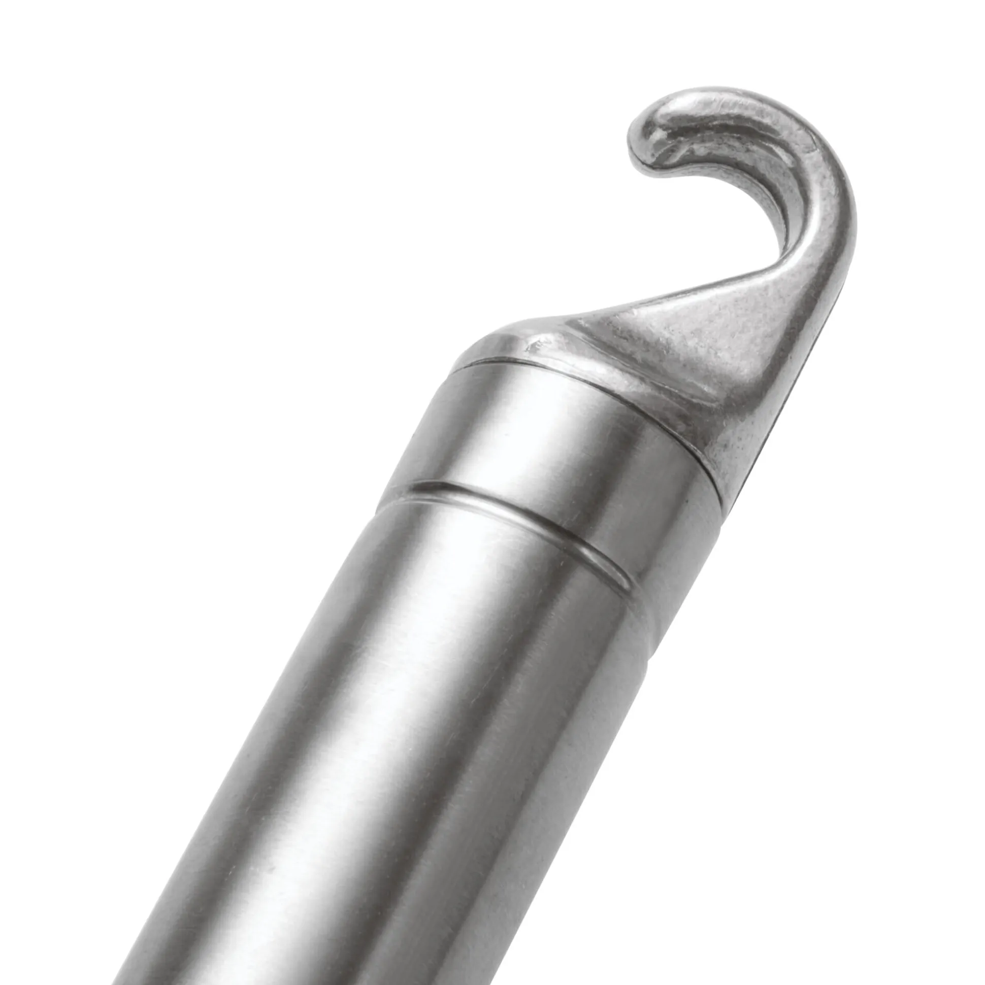 Aus dem gewerblichen Bedarf. Die Drähte aus Edelstahl sind fest in Kunststoff eingelassen. Aus Aluminiumguss sind die Haken, die das sichere „Ablegen“ der Schneebesen an Schüssel- oder Topfrand und an der Hakenleiste ermöglichen.