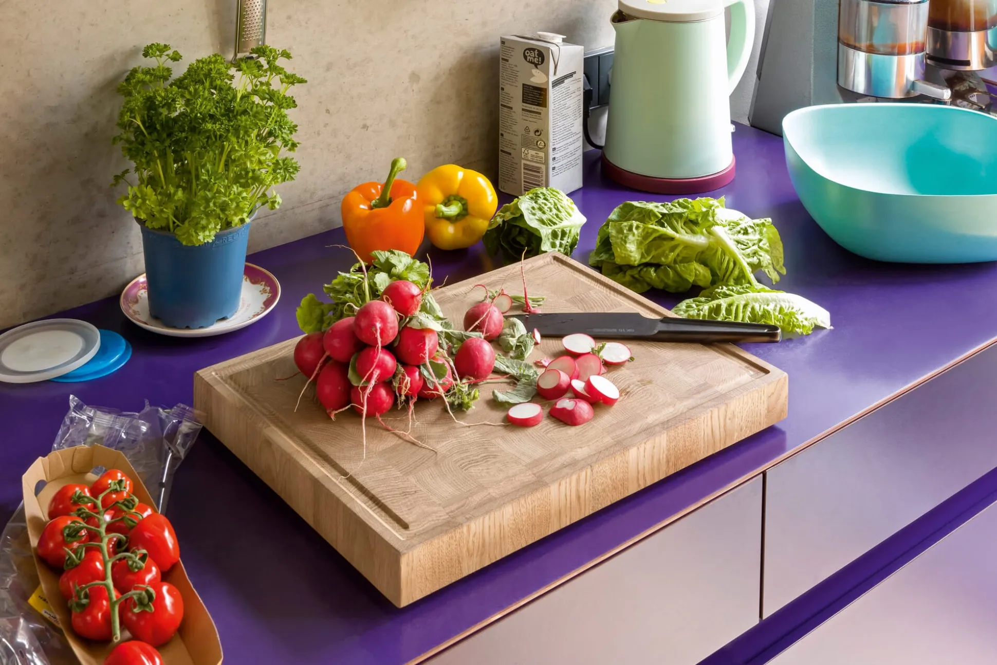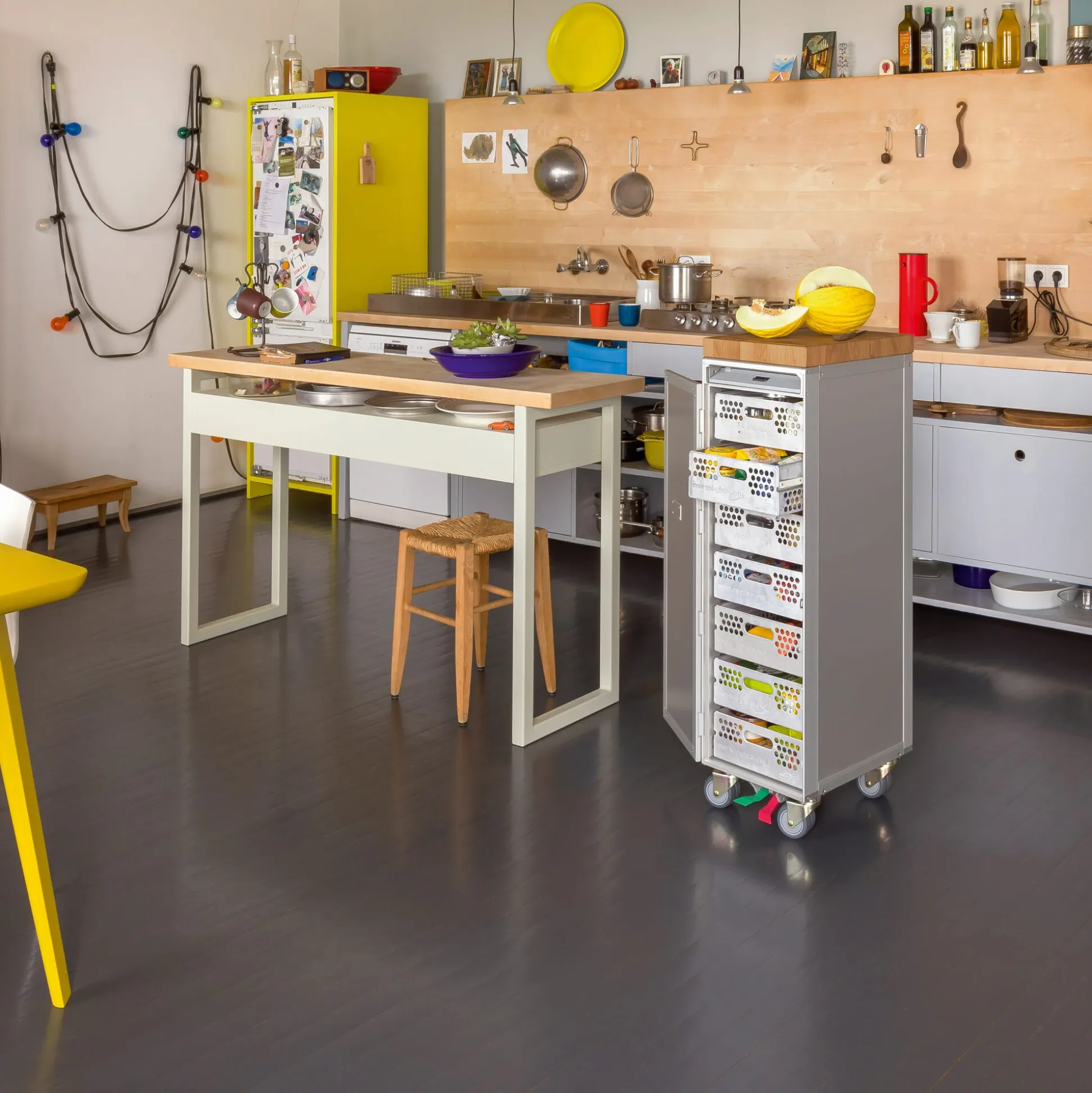Schneiden, Hacken, Zerkleinern – das als oberer Abschluss zu den Containertrolleys aus unserem Sortiment angebotene Schneidbrett könnte robuster nicht sein, denn es besteht aus Eschenholz. Gemüse, Fleisch, Brot – kein Gut, was hier nicht gehandhabt, zubereitet, in Form gebracht werden kann. Es passt formschlüssig in die obere Ablage der Container unterschiedlicher Typen und macht dieses ungewöhnliche Stauraummöbel zu einem ernsthaften Arbeitsgerät in der Küche.
