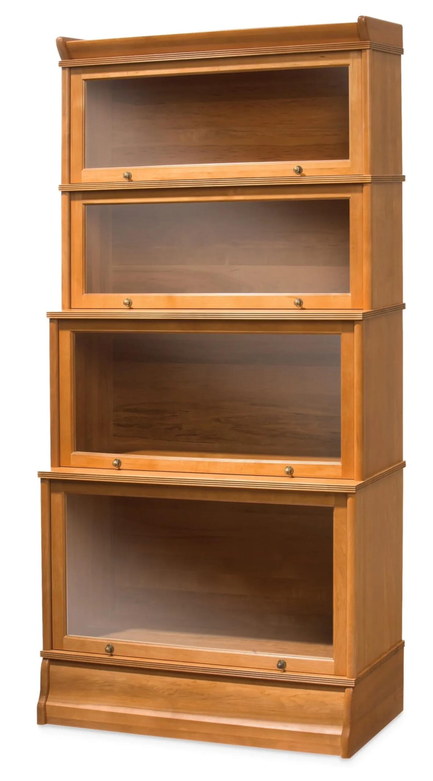 Er ist wohl der erste industrielle Anbauschrank und damit das erste Systemmöbel. Entwickelt wurden die Bauteile Ende des 19. Jahrhunderts als „elastic book case” von der Firma Globe-Wernicke in Cincinnati. 1896 wurde das Möbel in England patentiert und dort von der Firma Shannon Registrator hergestellt. Die Engländer benutzten die mit Decken eingepackten Schrankteile auf Auslandsmissionen als „Elefanten-Packtaschen” für ihre Bücher. Hergestellt und mit großem Erfolg verkauft wurde der Registrator dann seit den 1920er Jahren von den Tischlereien der Gebrüder Aug. Zeiss & Co. in Berlin. Wir lassen das Registrator-Schranksystem exklusiv für uns wieder bauen – in einer Möbelschreinerei in Württemberg. Gefertigt wird es aus massivem Holz, und zwar dem der Feuerlandkirsche (gebeizt und seidenmatt lackiert). Diese zu den Harthölzern zählende Scheinbuchenart wächst im südlichen Südamerika (unsere in Chile) in ausgedehnten Beständen. Ihr Holz zeigt eine lebhafte Maserung. Der Shannon-Registrator ist ein echtes Systemmöbel, mit dem sich viele Einrichtungsideen verwirklichen lassen. Seine Elemente können Sie nach Ihren Wünschen zu unterschiedlichsten hochfunktionalen, auch raumfüllenden Einrichtungslösungen zusammenstellen: als Schrank- und Bücherschranksystem für Wohnzimmer oder Büro, als Anrichte, Kommode und Büffet für Küche, Wohn- und Esszimmer und vieles mehr. Sie können sie mit Ergänzungselementen und verschiedenen Inneneinteilungen ausstatten, oder mit passenden Ergänzungsmöbeln wie den Rollladenschränken oder dem Rollladen-Schreibtisch komplettieren. Und in einem praktischen (Neben-)Nutzen war der Registrator seiner Zeit bereits weit voraus: In den hohen Sockelelementen lässt sich „Kabelsalat“ unsichtbar verstauen.