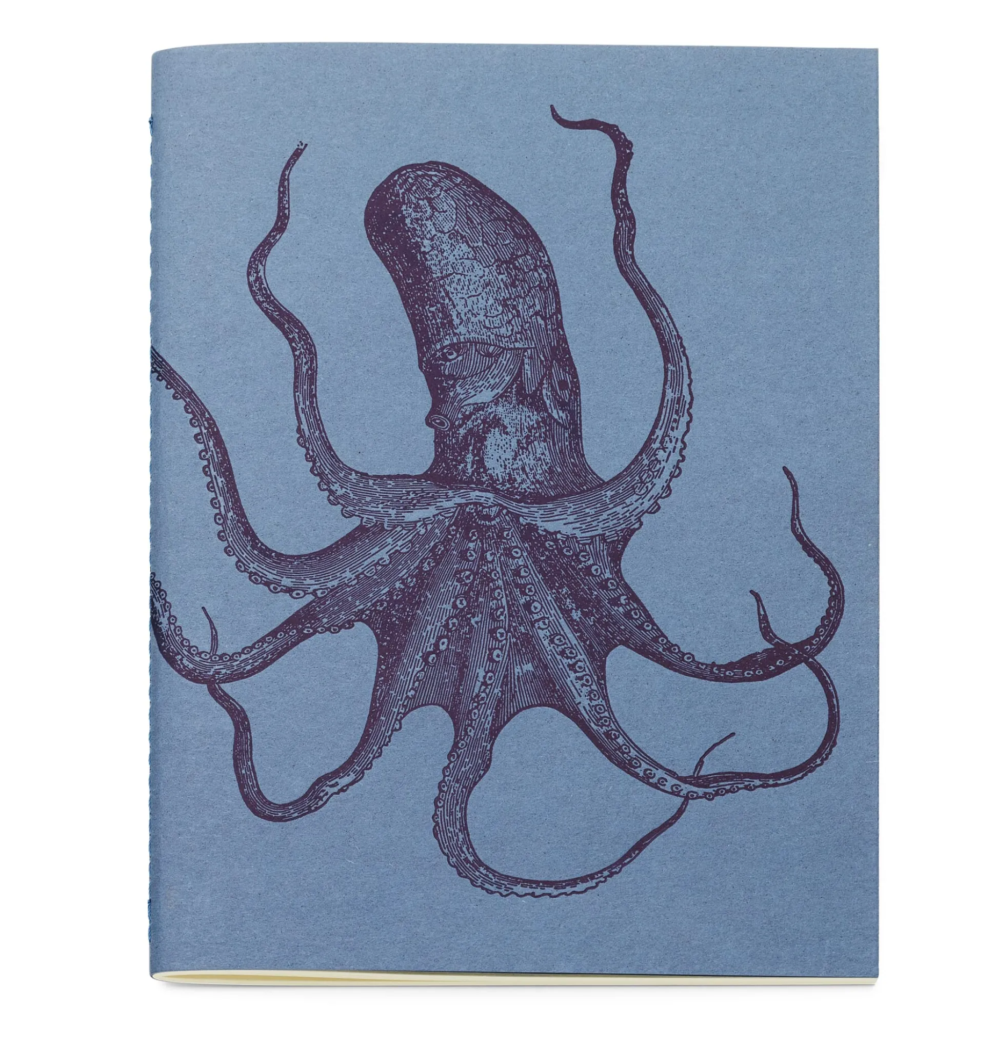 Umschlag aus 250-g-Recyclingkarton (75% Zellstoff, 25% Baumwolle). Mit rein pflanzlichen Farbstoffen durchgefärbt und bedruckt: je nach Motiv Rot auf Grün, Blau auf Hellbraun, Blau auf Braun, Blau auf Hellblau oder Schwarz auf Weiß. 32 Blätter und 2 Zierblätter aus 85-g-Recyclingpapier (75% Zellstoff, 25% Baumwolle). 21 × 15 cm. Aus Italien.