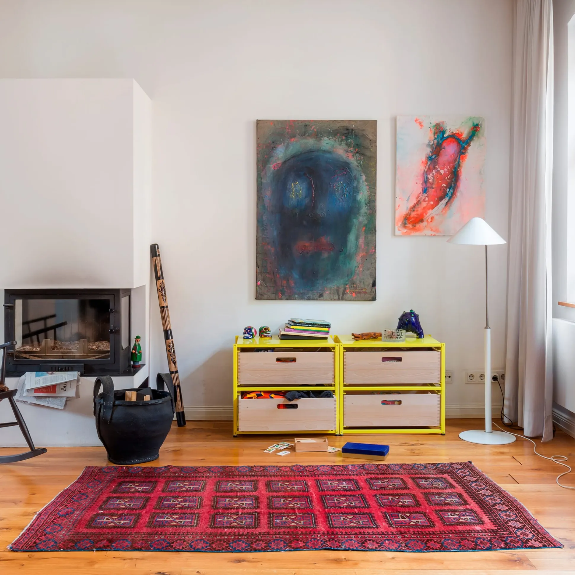 STELLAGE ZWEI macht den tausendfach in der Lagerlogistik und im Transportwesen genutzten Eurobehälter zum Staumöbel und bringt seine idealen Proportionen und dienstbaren Eigenschaften in den Wohnbereich: Als Schubladen lassen sich die praktischen Systemkisten passgenau in das Stahlgestell einschieben und erfüllen als Schubladenregal vielfältige Aufgaben: als Vorratsmöbel in der Küche, als Stauraum für Wäsche und Kleidung, für Papier und Bürokram im Arbeitsraum oder als Lagerregal im Hauswirtschaftsraum. Die Regalelemente sind aus pulverbeschichtetem Stahl gefertigt, bieten Platz für je zwei Kisten und lassen sich mithilfe der mitgelieferten Verbinder mit Federmechanik übereinanderstapeln – zu niedrigen Kommoden bis hin zu hohen Wandregalen.