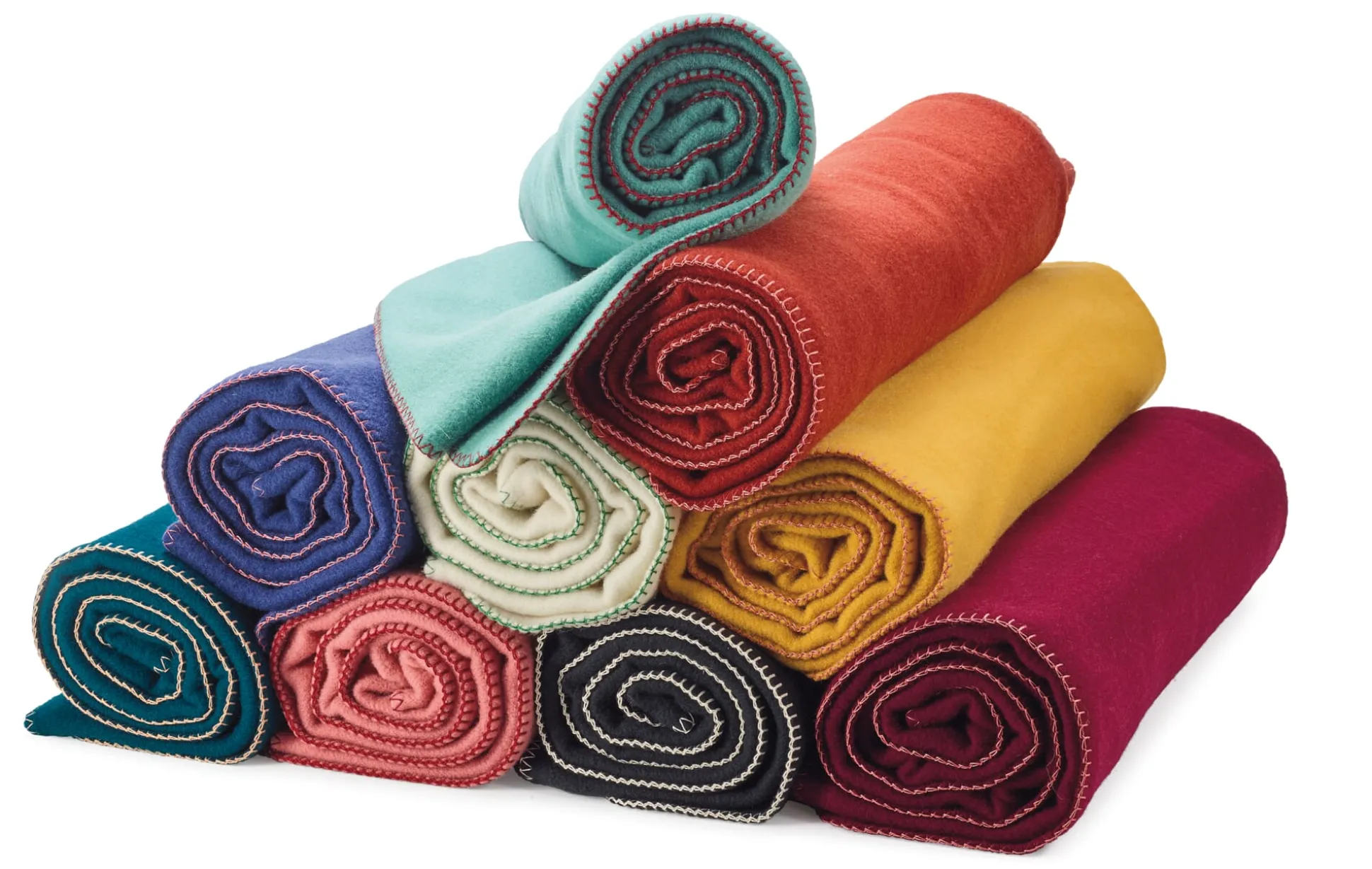 Um die Decke noch voluminöser und weicher zu gestalten, erhält die Oberfläche auf mit Naturdisteln bestückten Rollkarden-Raumaschinen einen sogenannten Rauflor. Der ringsum verlaufende, kontrastfarbene Kettelstich wird von einer alten, selten gewordenen Kettelmaschine durchgeführt.