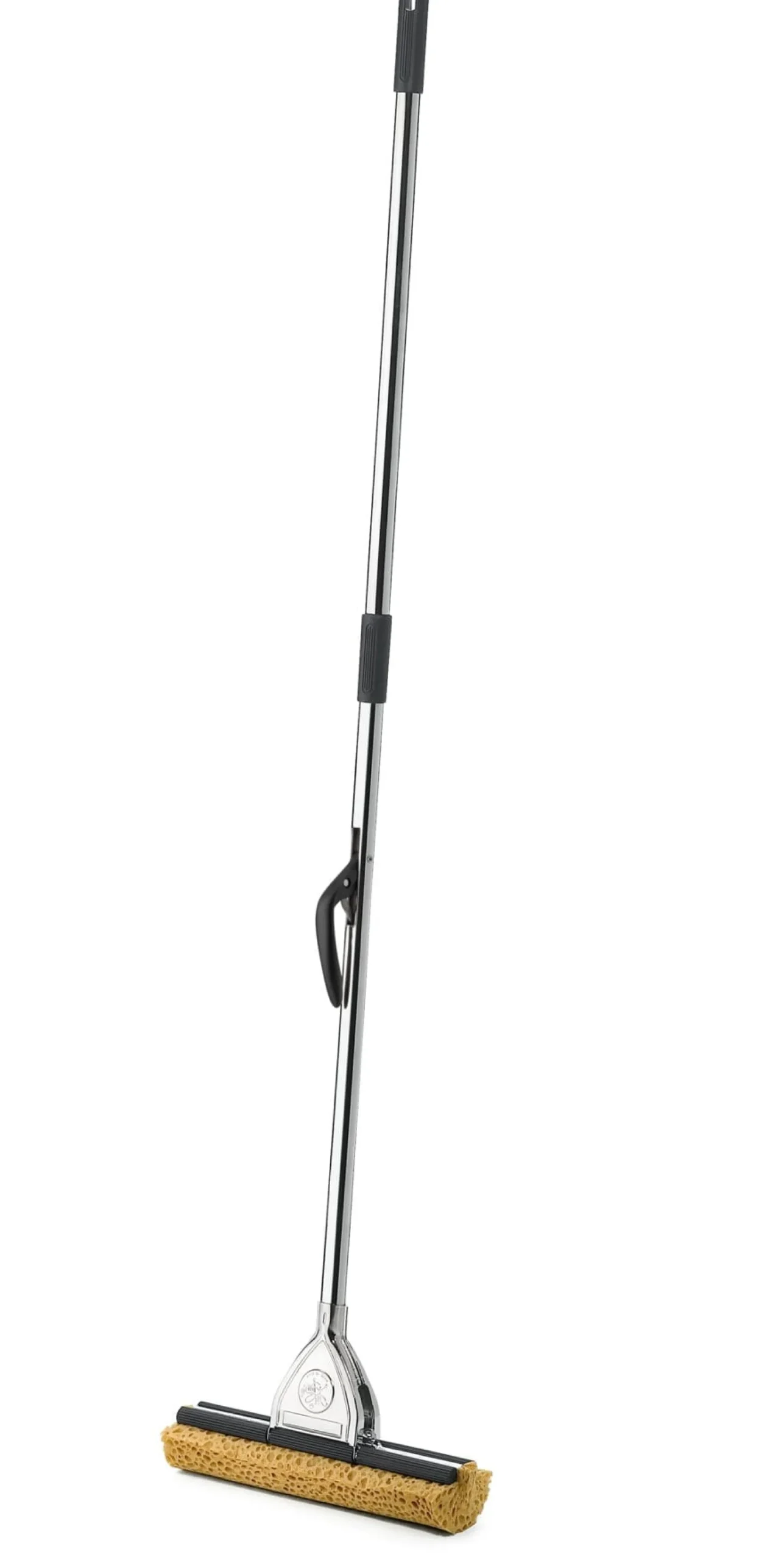 Diesen italienischen Wischer gibt es seit 1954, und er zog seither eine große Zahl von Kopien nach sich, die es aber allesamt mit diesem Original nicht aufnehmen können. Ein einfacher Hebelzug sorgt dafür, dass der Schwamm mit starken Kunststoffrollen ausgewrungen wird – und die Hände beim Wischen trocken bleiben. Mit dem 32 cm breiten, austauschbaren Polyurethanschwamm erledigt er seine Arbeit äußerst effektiv. Sie benötigen jedoch einen Wasserbehälter mit entsprechenden Maßen, wie zum Beispiel den eckigen Kunststoffeimer aus unserem Sortiment.