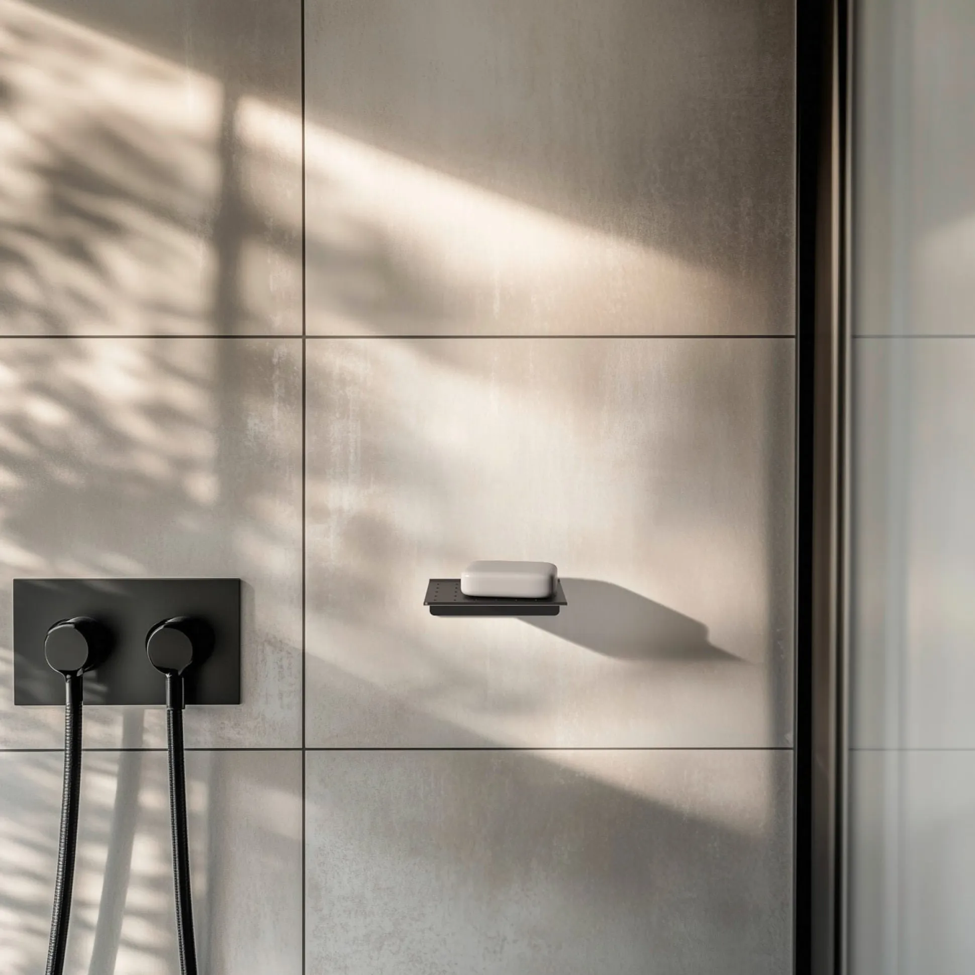Grafisch-schöne Seifenablage zur Wandmontage aus gelochtem und gekantetem Aluminium. Die großzügige Fläche bietet ausreichend Platz zum komfortablen Ablegen von Seifenstücken, die Löcher in der Fläche sorgen für das Abtrocknen der nassen Seifen. Die Pulverbeschichtung verleiht der Ablage eine robuste, wasserfeste Oberfläche.