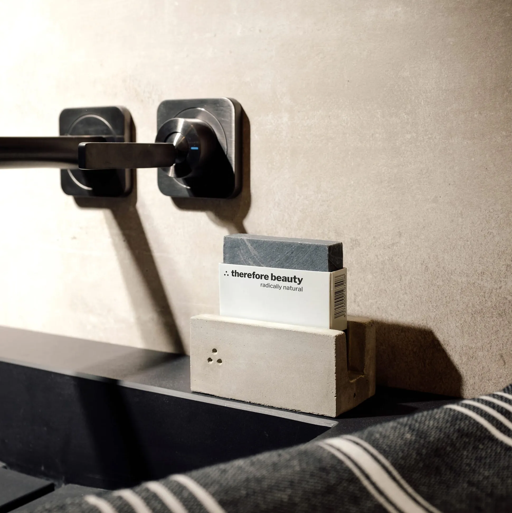 Die Naturseifen ersetzen Shampoo, Duschgel und Gesichtsreiniger. Gesichtsöle, Deodorants und Zahnpflegeprodukte ergänzen das Sortiment. Alle Pflegeprodukte werden in Handarbeit in einer norddeutschen Seifenmanufaktur hergestellt. Die Blockseifen bestehen aus nur 4 bis maximal 15 natürlichen Zutaten und sind frei von Palmöl. therefore beauty setzt auf ein traditionelles, kaltes Rührverfahren, um die wertvollen Eigenschaften der Inhaltsstoffe zu bewahren. Die Seifen reifen mehrere Wochen, bevor sie perfekt für den Gebrauch sind. Von einer Werkstatt für Menschen mit Behinderung werden sie plastikfrei verpackt.