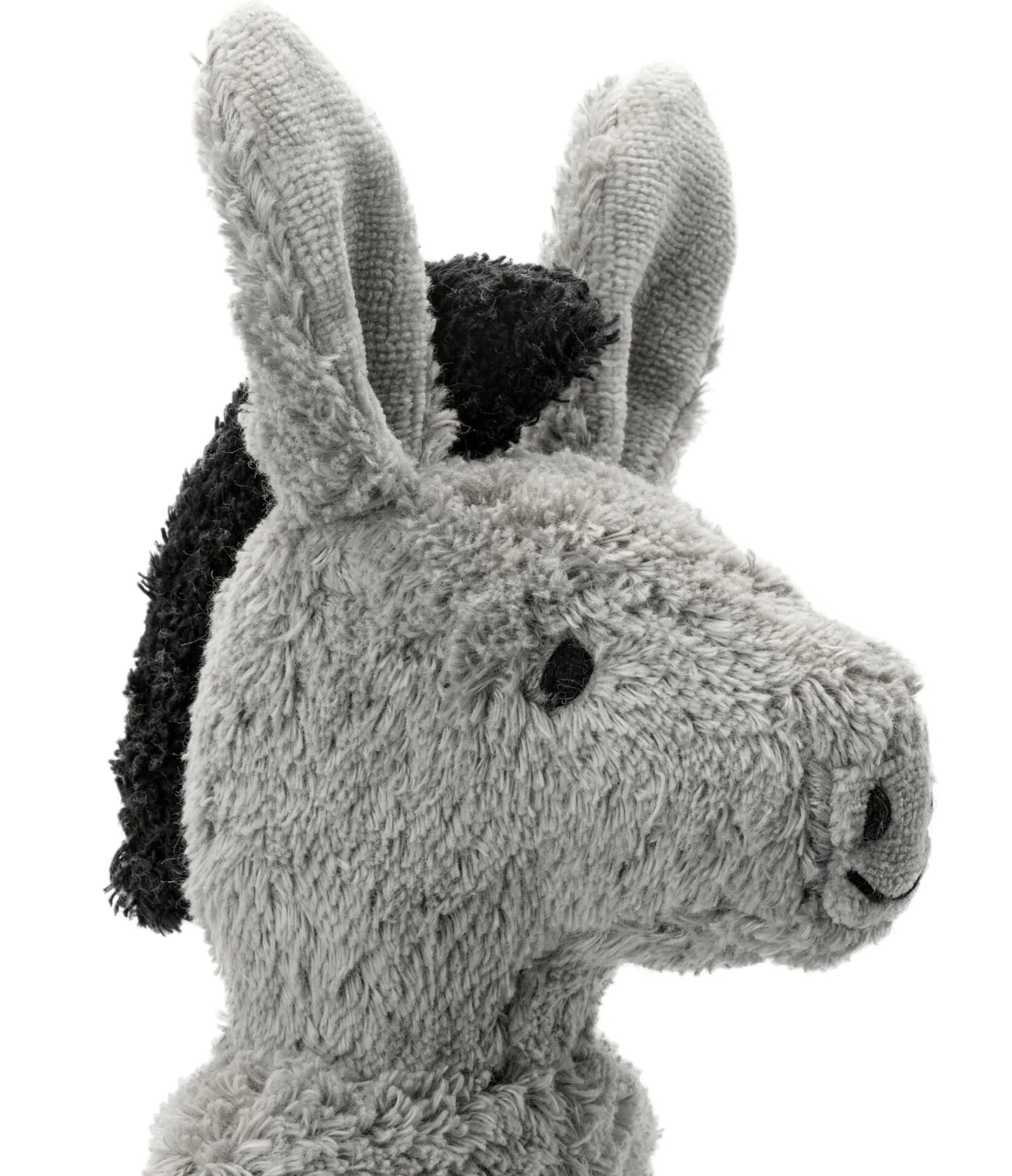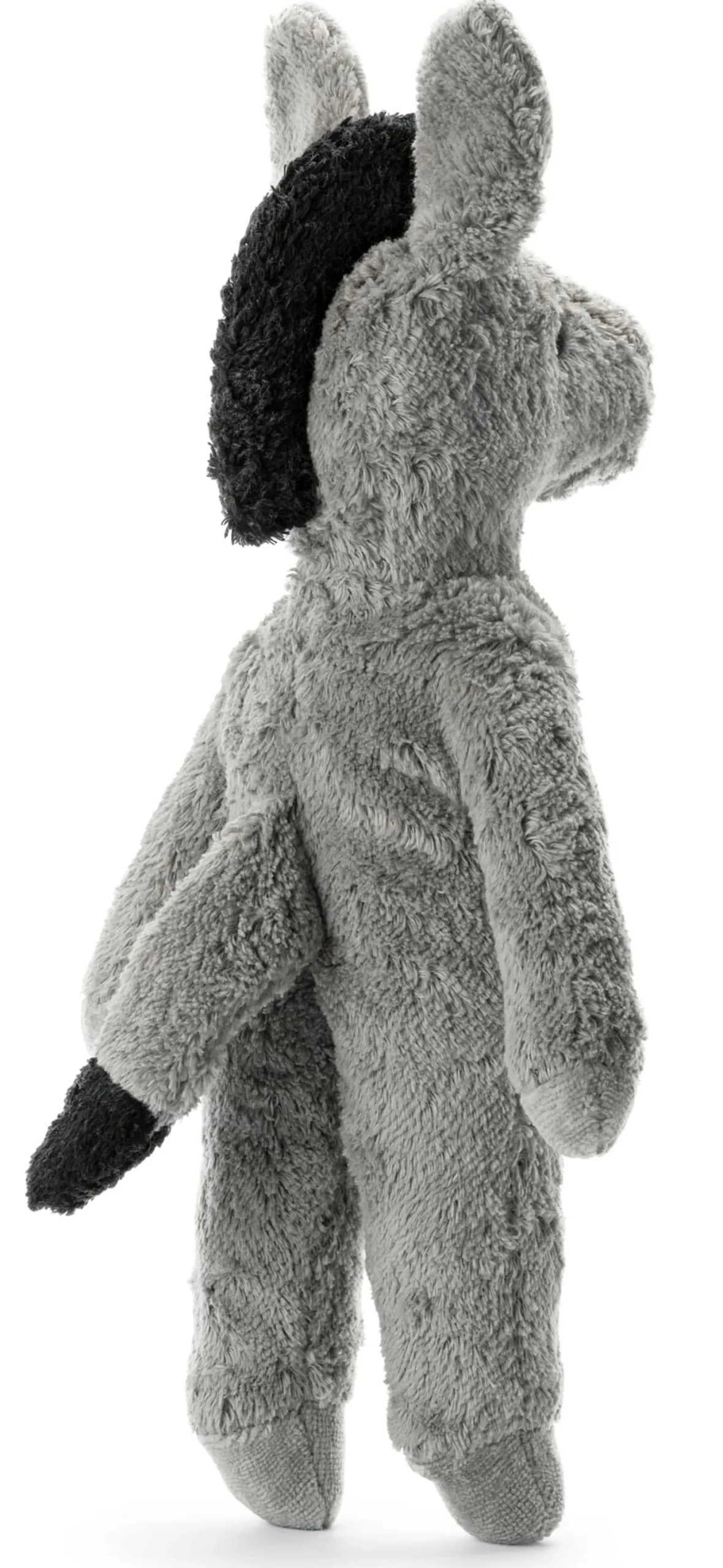 Fell 100% Baumwolle, Füllung 100% Schurwolle, Herkunft Deutschland. Höhe 33 cm. Ohrlänge 8 cm. Gewicht 170 g.