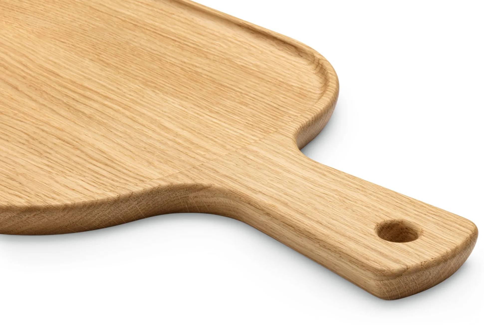 Der Stielgriff ermöglicht nicht nur das Transportieren des voll besetzten Brettes aus der Küche ins Wohn- oder Esszimmer. Er vereinfacht auch das Arrangieren auf dem gedeckten Tisch, derweil der umlaufende Rand Ihre ausgewählten Köstlichkeiten daran hindert, herunterzurollen. Unser Servierbrett kommt von Breka in Slowenien und wird in bester handwerklicher Manier aus Eichenholz gearbeitet. Das Holz wird nach dem Zuschneiden, Schleifen und Glätten noch geölt. Diese Art der Oberflächenbehandlung bringt die natürliche Maserung der Eiche in besonderer Weise hervor. Tipp: zur Reinigung nach Gebrauch feucht abwischen. Tragen Sie zur Pflege der Holzoberflächen gelegentlich ein wenig Speiseöl auf.