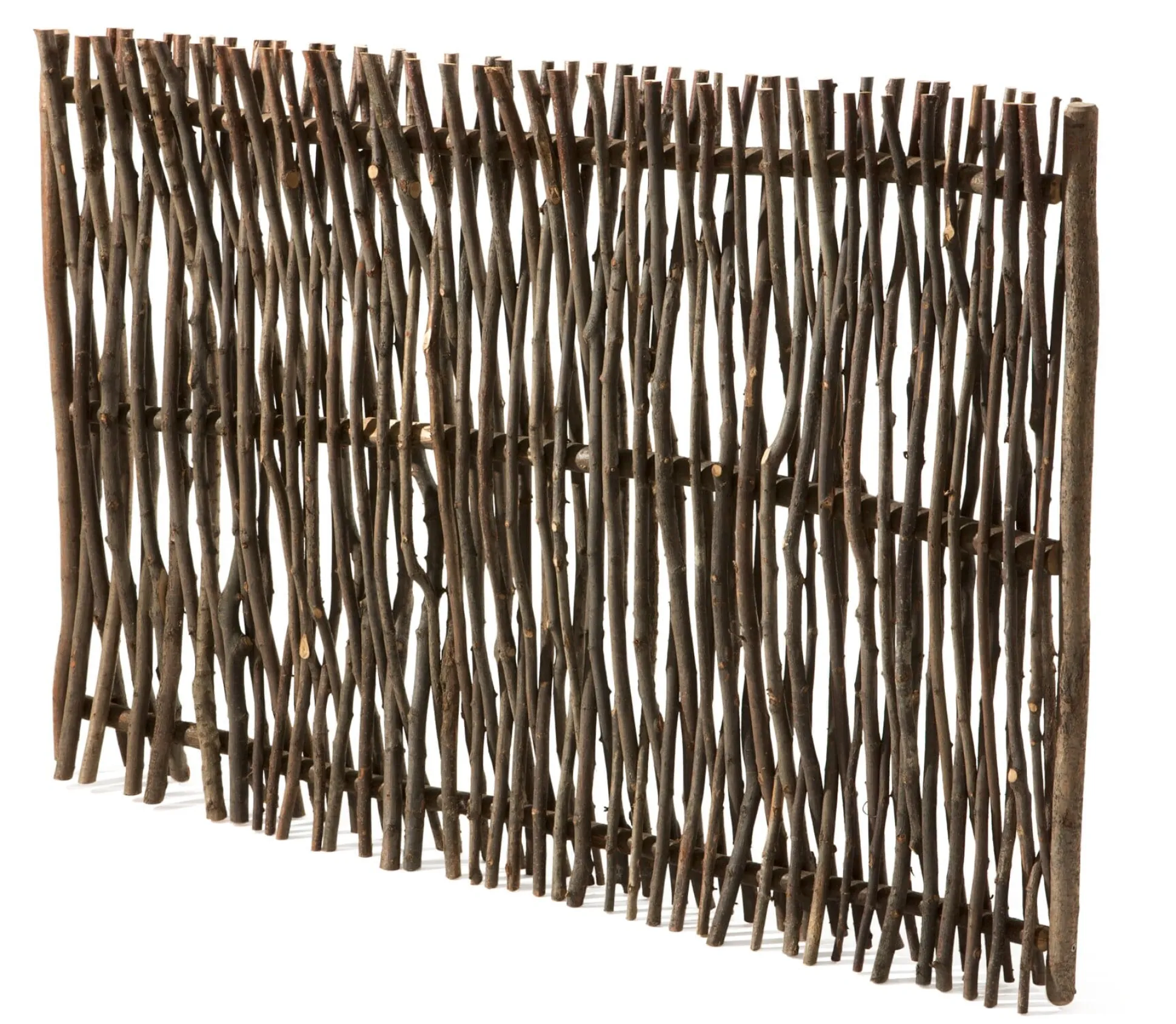 Aus Haselruten. Höhe 1,8 m, Breite 1,5 m, Tiefe 12 cm. Gewicht 28 kg.