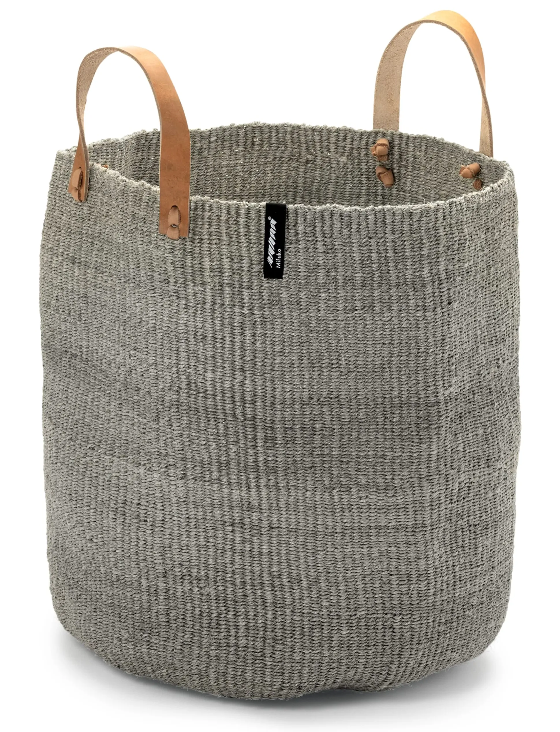 Mifuko ist Swahili und heißt Tasche. Mit Taschen und Körben begann auch die Kooperation des finnischen Designer-Duos Minna Impiö und Mari Martikainen mit den kenianischen Frauen – was lag also näher, als die Firma danach zu benennen? Im Mittelpunkt des Sortiments von Mifuko stehen Produkte, die aus ressourcenschonenden oder nachwachsenden natürlichen Materialien aus der Region von Hand gefertigt werden. So werden die Taschen und Körbe aus Sisal, Milulu-Gras, Palmblättern, Elefantengras oder Papierkordeln gemacht, aber auch recyceltes Plastik wird eingesetzt. Die Behältnisse sind dabei nicht nur für Transportzwecke gedacht, sondern dienen vielmehr auch als vielseitige Aufbewahrungs- und Ordnungshelfer im Haus: wie dieser große Korb mit einem Fassungsvolumen von knapp 34 Litern. Aus Sisal geflochten, ist er leichter und flexibler als etwa Weidenkörbe, dennoch verfügt er über genügend Standfestigkeit, sodass er in Bad, Küche, Kinderzimmer oder Hobbyraum stehen kann, um Handtücher, Wäsche, Spielzeug, Bauklötze oder Plüschtiere und vieles andere mehr zu beherbergen. Dank der kräftigen Trageriemen aus Leder lässt sich der Sisal-Korb bequem tragen und kann so auch durchaus einmal als Einkauftasche verwendet werden.