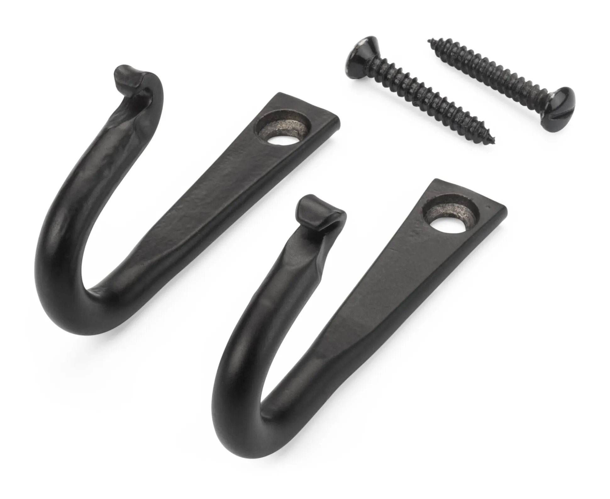 Länge 5,6 cm, Breite 1 cm. Ausladung 3 cm. Gewicht je 17 g. Farbe Schwarz. 2 Haken im Doppelpack, Befestigungsschrauben liegen jeweils bei.